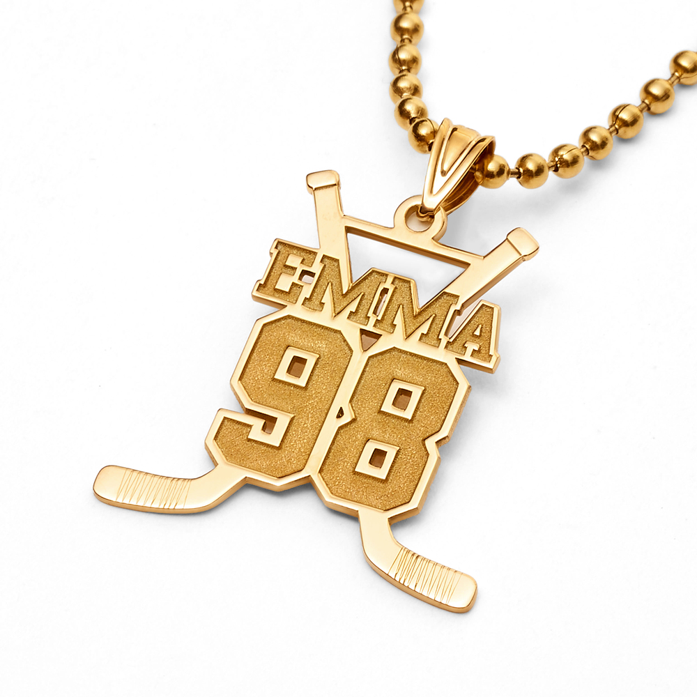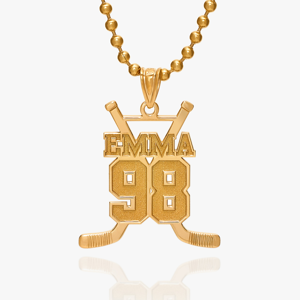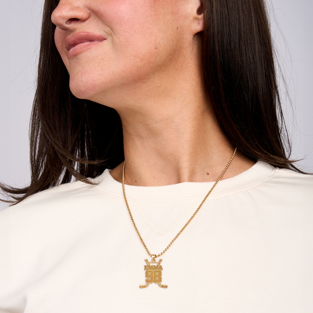 Your Personalized Hockey Sticks pendant is available in 2 sizes and in 14K Solid Yellow Gold,