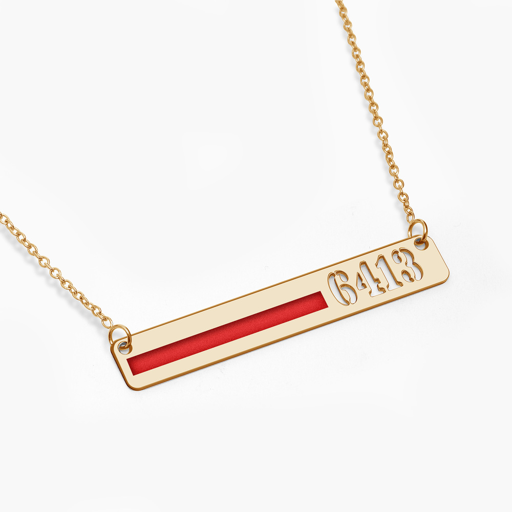Personalized Horizontal Thin Red Line Firefighter Necklace w/ 18" Chain