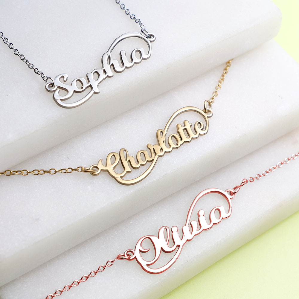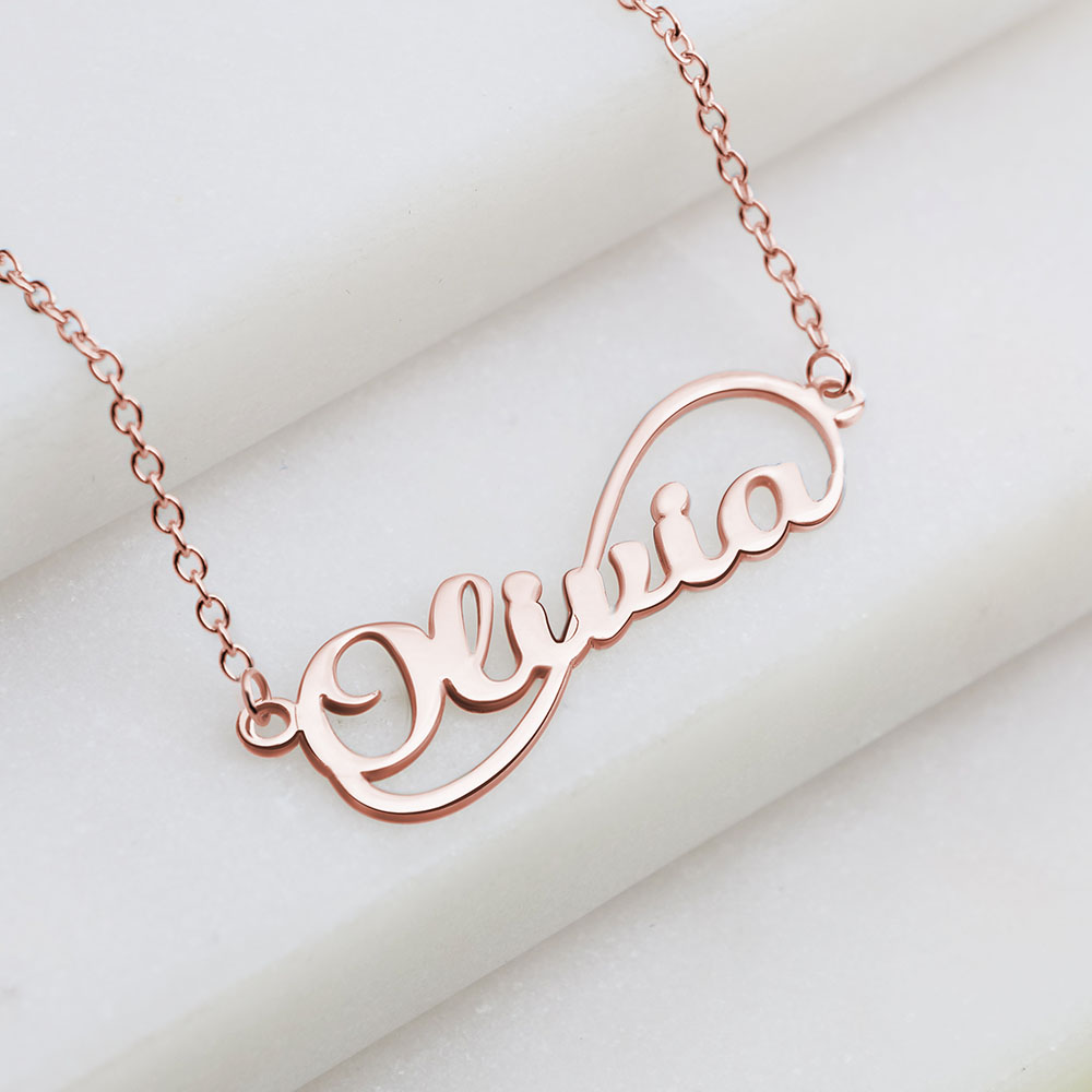 Unveil timeless elegance with our Personalized Infinity Script Name Necklace. Crafted with care, this exquisite piece not only carries your name but symbolizes everlasting connections. With an included chain, wear your loved ones close to your heart, making every moment infinite.