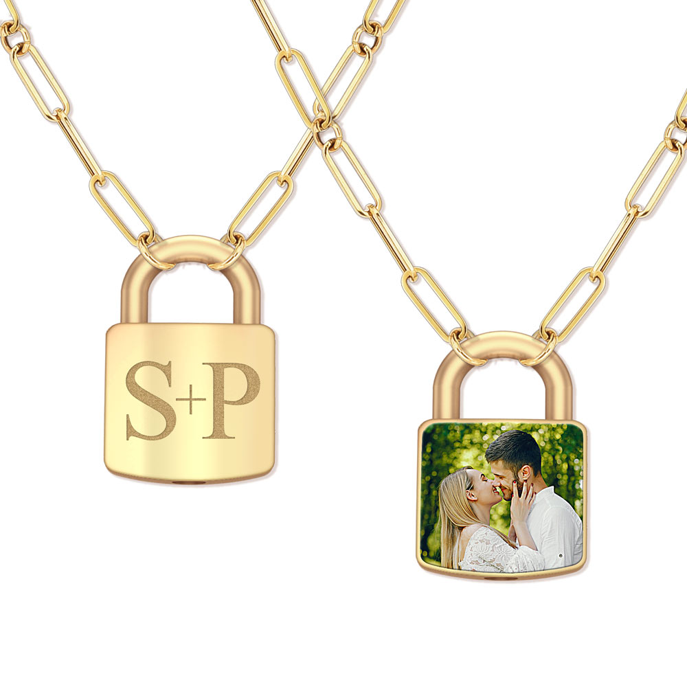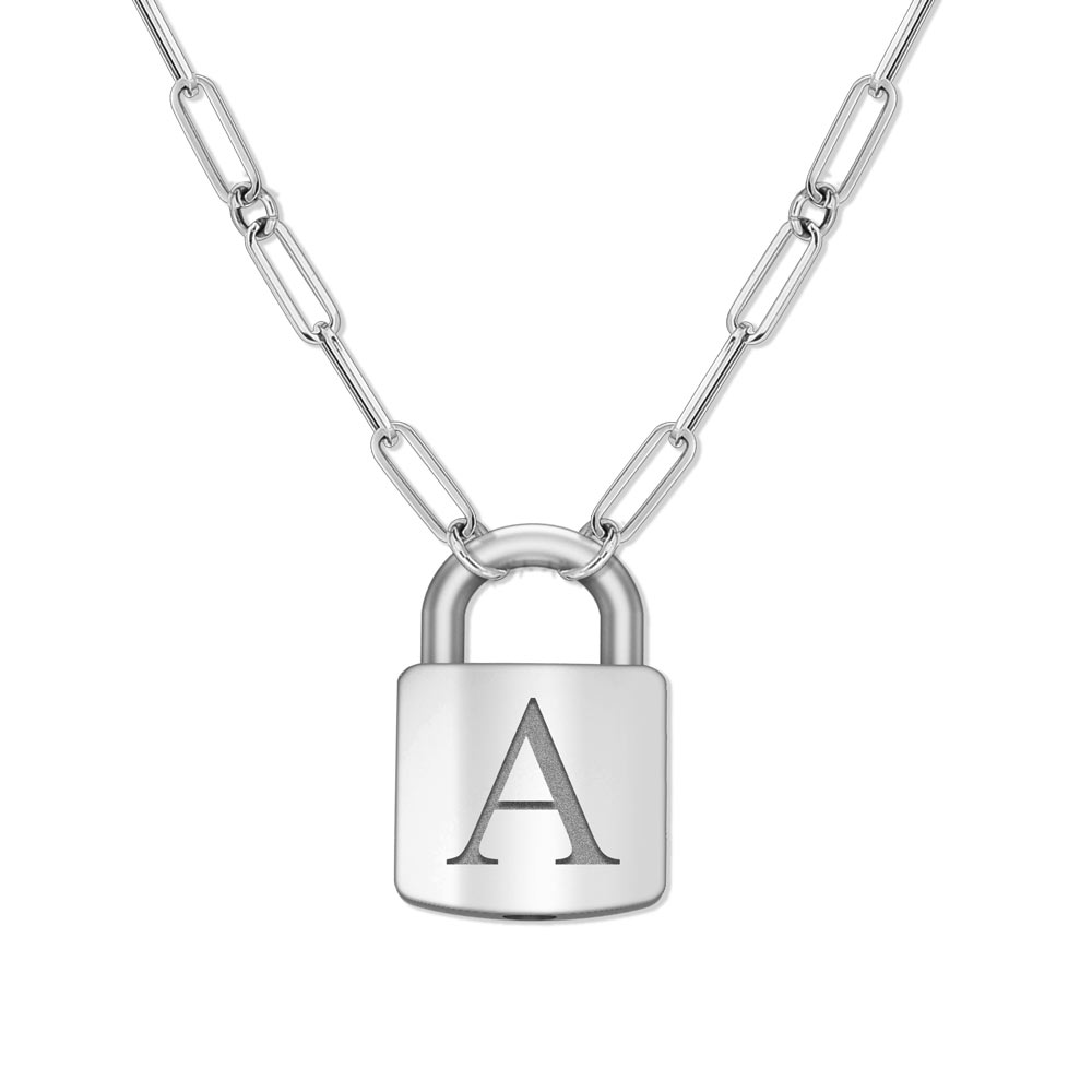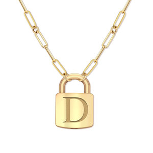This Personalized Initial Padlock Necklace with Paperclip Chain Included is the perfect mother's day gift for the stylish