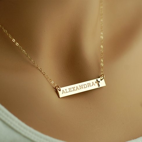 Personalized Name Bar Necklace w/ Cross Design & 18" Chain