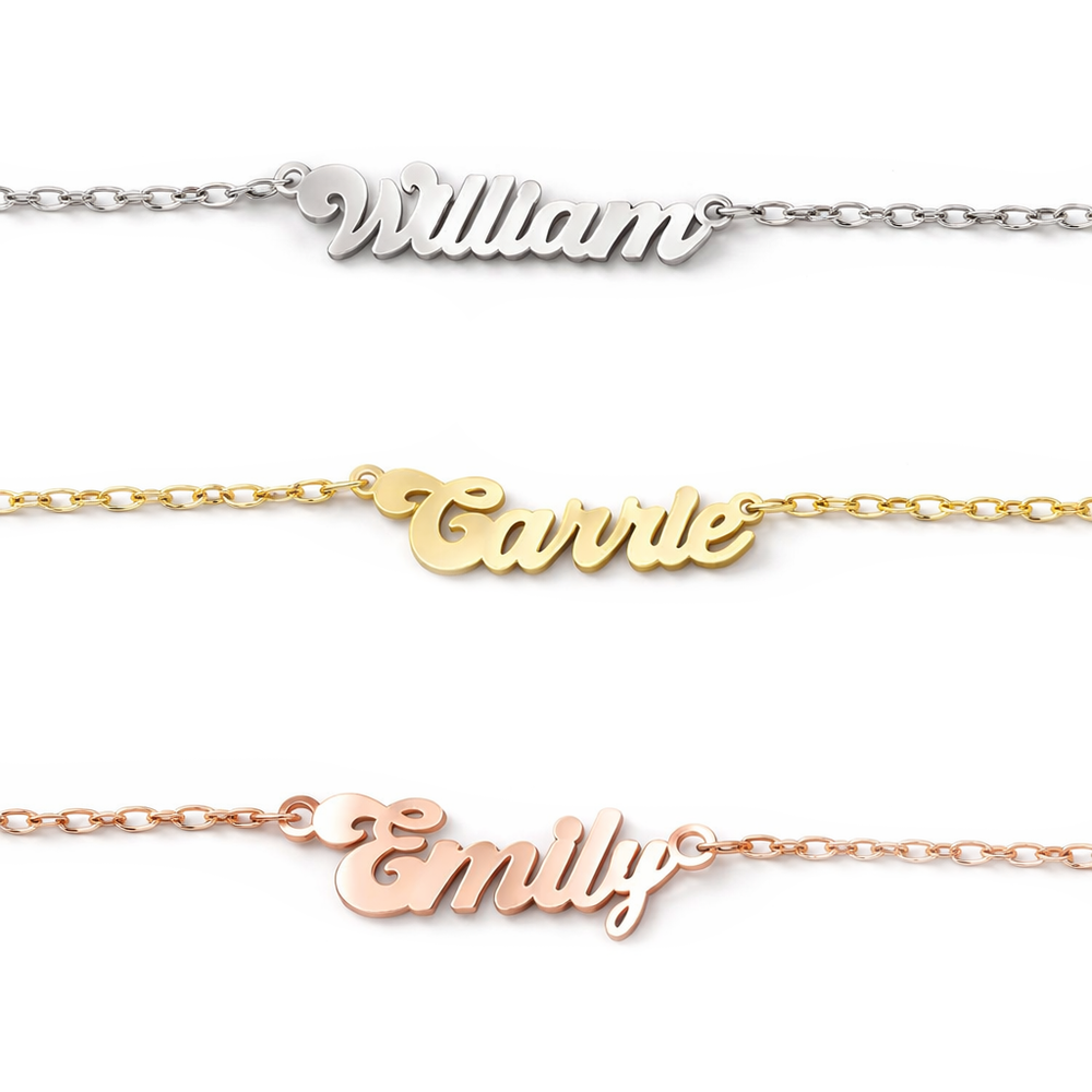 Turn heads with a dazzling bracelet bearing your name! This personalized bracelet crafted from sterling silver or yellow gold plated metal ensures all eyes stay glued on your wrist. Your first name engraved in stylish script font Choice of sterling silver or yellow gold plated metal Ships and made in the USA for speedy delivery Excellent quality and craftsmanship Flaunt your fabulous first name with this eye-catching bracelet. The elegant cursive engraving of your name makes a bold fashion statement that's sure to draw compliments. Plus, you'll love the brilliant shine of the sterling silver or lustrous glow of the yellow gold plating. Make an impression wherever you go with a name bracelet that's all about you! This personalized piece adds a touch of sophistication while reminding everyone who you are in glamorous style. Turn heads with a dazzling bracelet bearing your name! This personalized bracelet crafted from sterling silver or yellow gold plated metal ensures all eyes stay glued on your wrist. Your first name engraved in stylish script font Choice of sterling silver or yellow gold plated metal Ships and made in the USA for speedy delivery Excellent quality and craftsmanship Flaunt your fabulous first name with this eye-catching bracelet. The elegant cursive engraving of your name makes a bold fashion statement that's sure to draw compliments. Plus, you'll love the brilliant shine of the sterling silver or lustrous glow of the yellow gold plating. Make an impression wherever you go with a name bracelet that's all about you! This personalized piece adds a touch of sophistication while reminding everyone who you are in glamorous style.