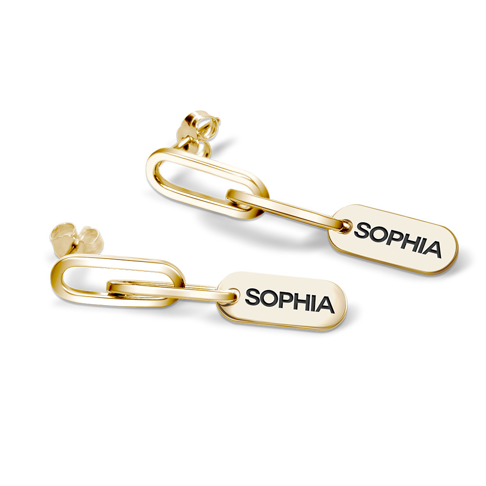 Introducing our EXCLUSIVE Paperclip Chain Name Earrings, a fusion of modern design and personalization. Crafted with precision, these earrings feature delicately linked paperclip chains, creating a contemporary aesthetic. Customize with your chosen name or initials for a truly unique accessory that effortlessly elevates any ensemble.