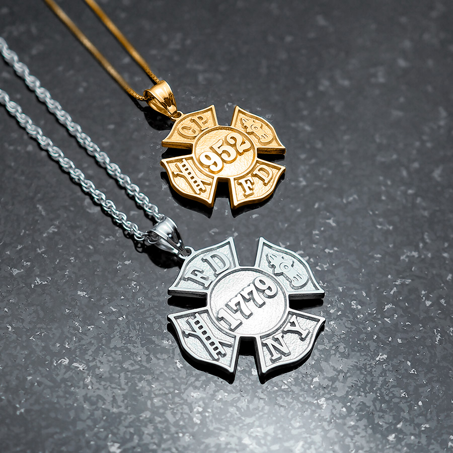 * Available in 14K Yellow Gold, 14K White Gold, & Sterling Silver * Specify the Fire Department Initials and Number. *Ships in 1-2 Business Days!