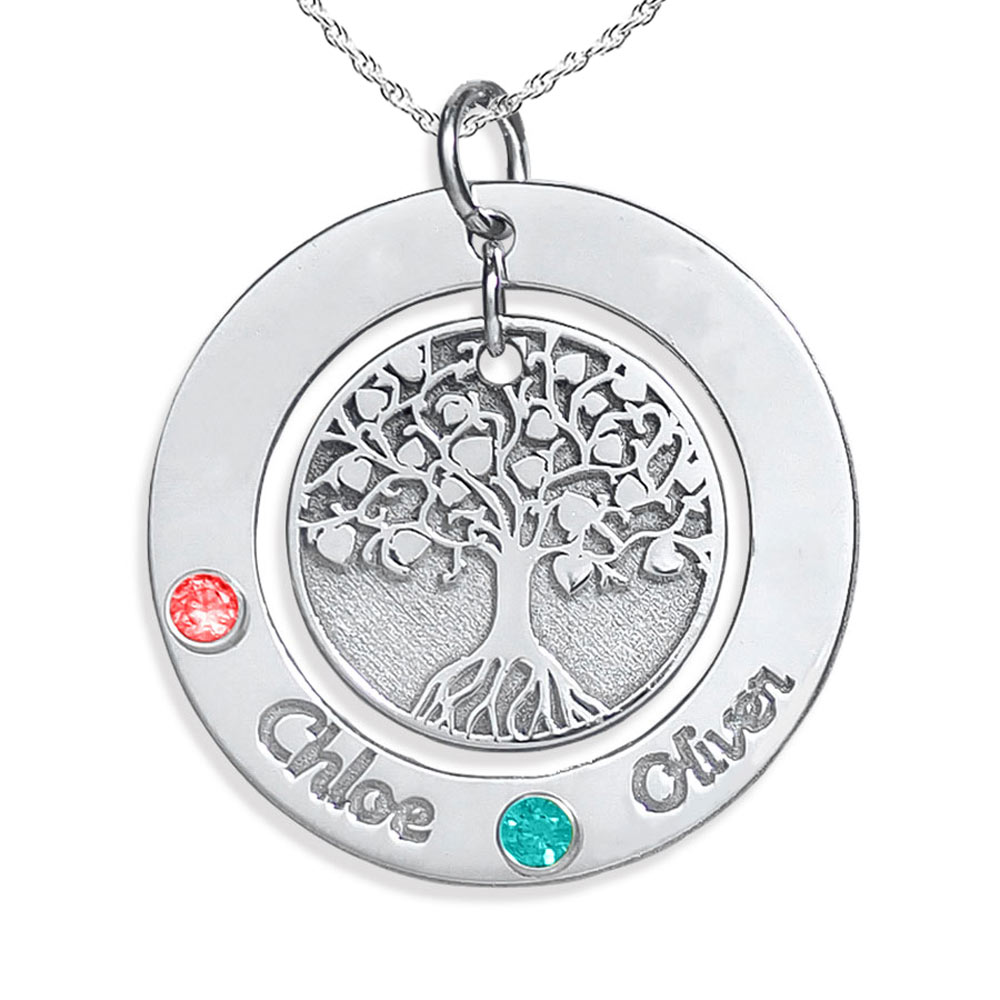 This Personalized Circle Cutout Family Tree Pendant includes an 18 Inch Chain. The Family Tree is engraved on a dangling