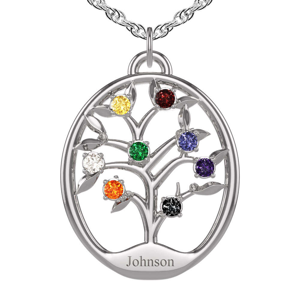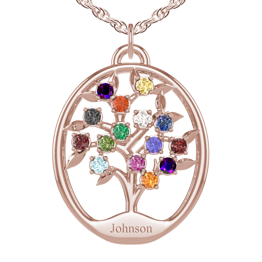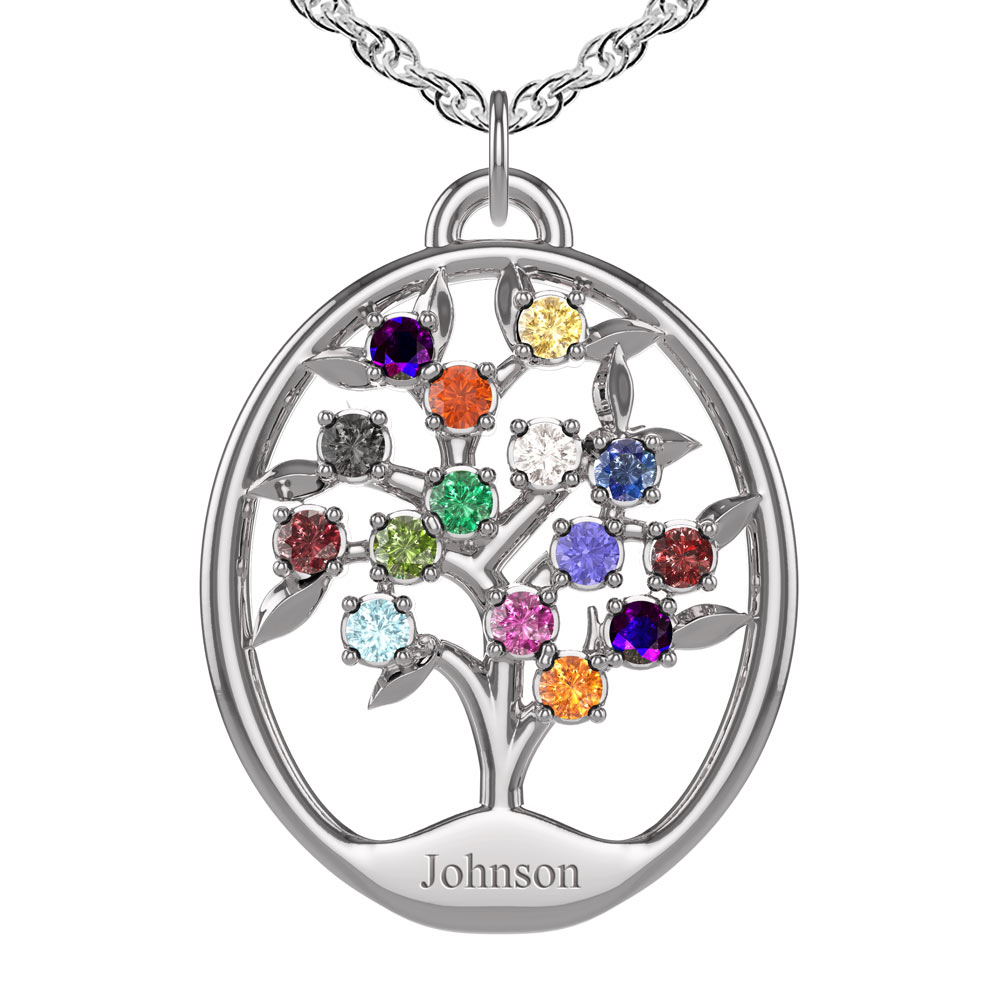 New Personalized Surname Family Tree Pendant can hold up to 15 birthstones.