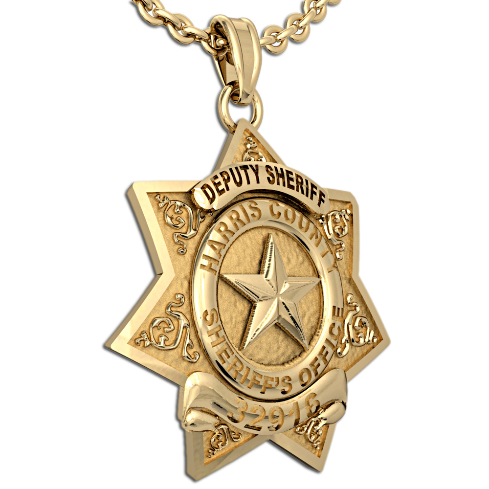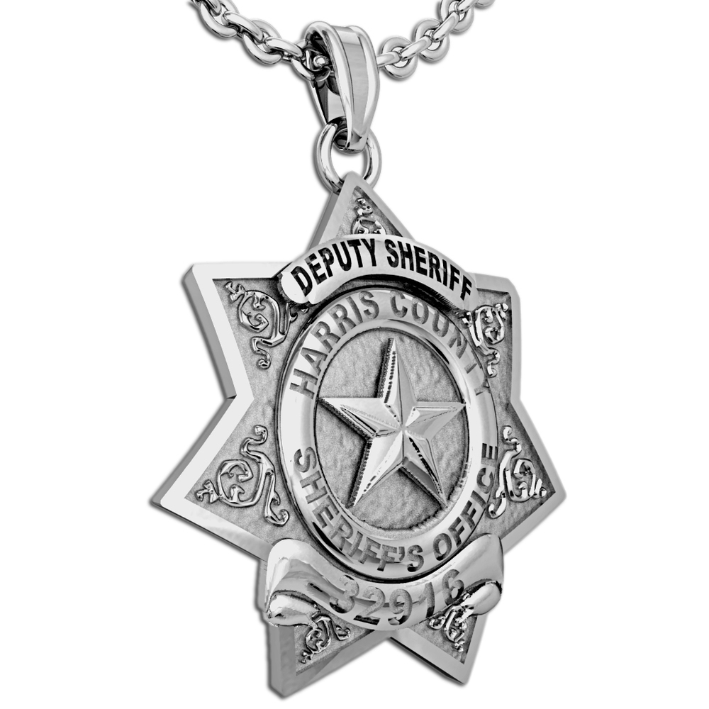 Each badge can be personalized with your county, your badge number, and your Police Rank.