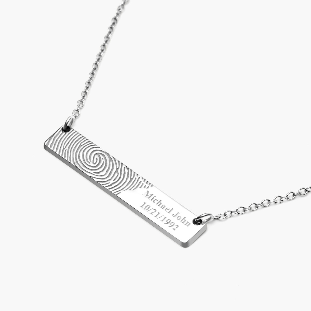 Custom Fingerprint Horizontal Bar Necklace