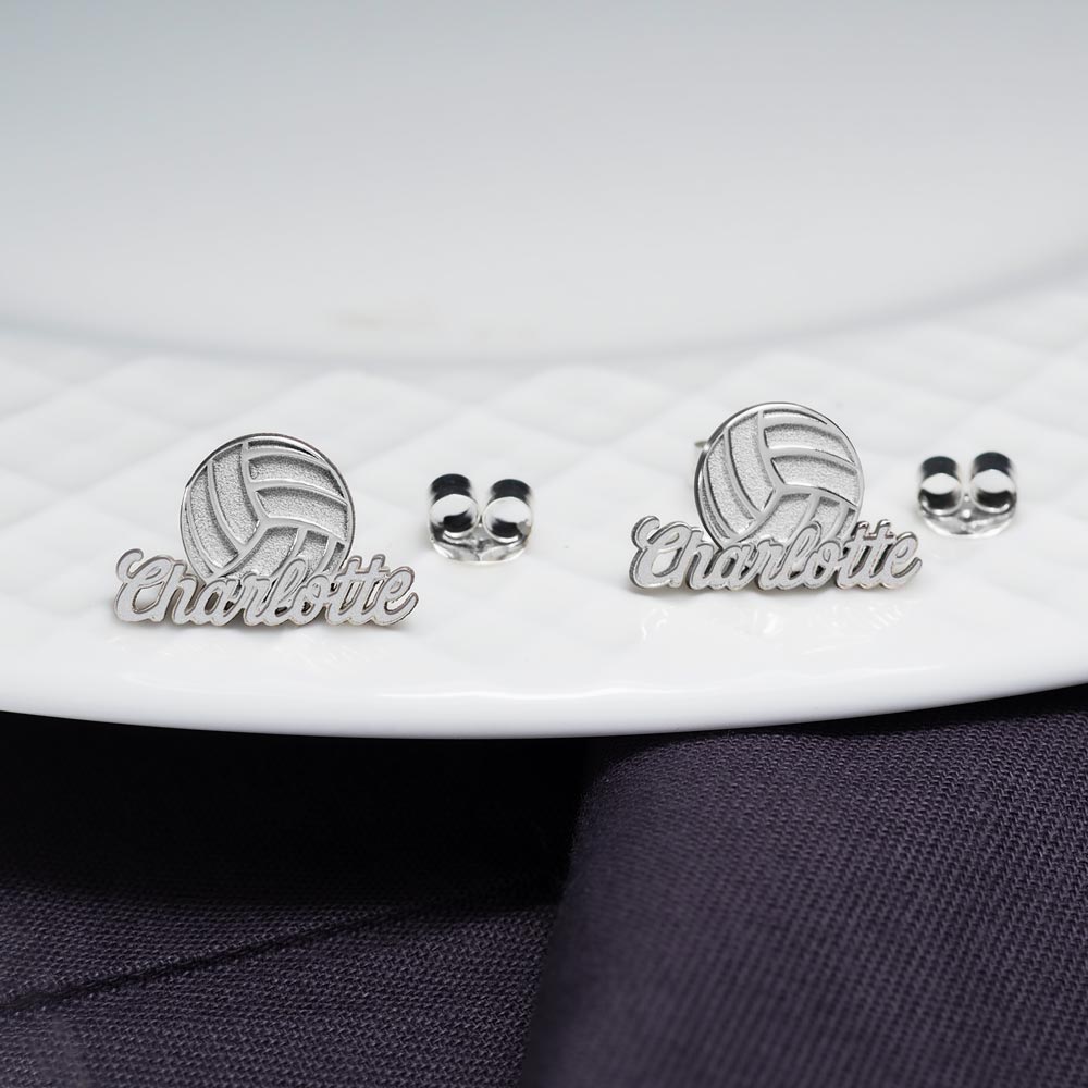 This pair of Volleyball earrings is available in Solid .925 Sterling Silver, Gold Plated, Rose Gold Plated or Solid 14k