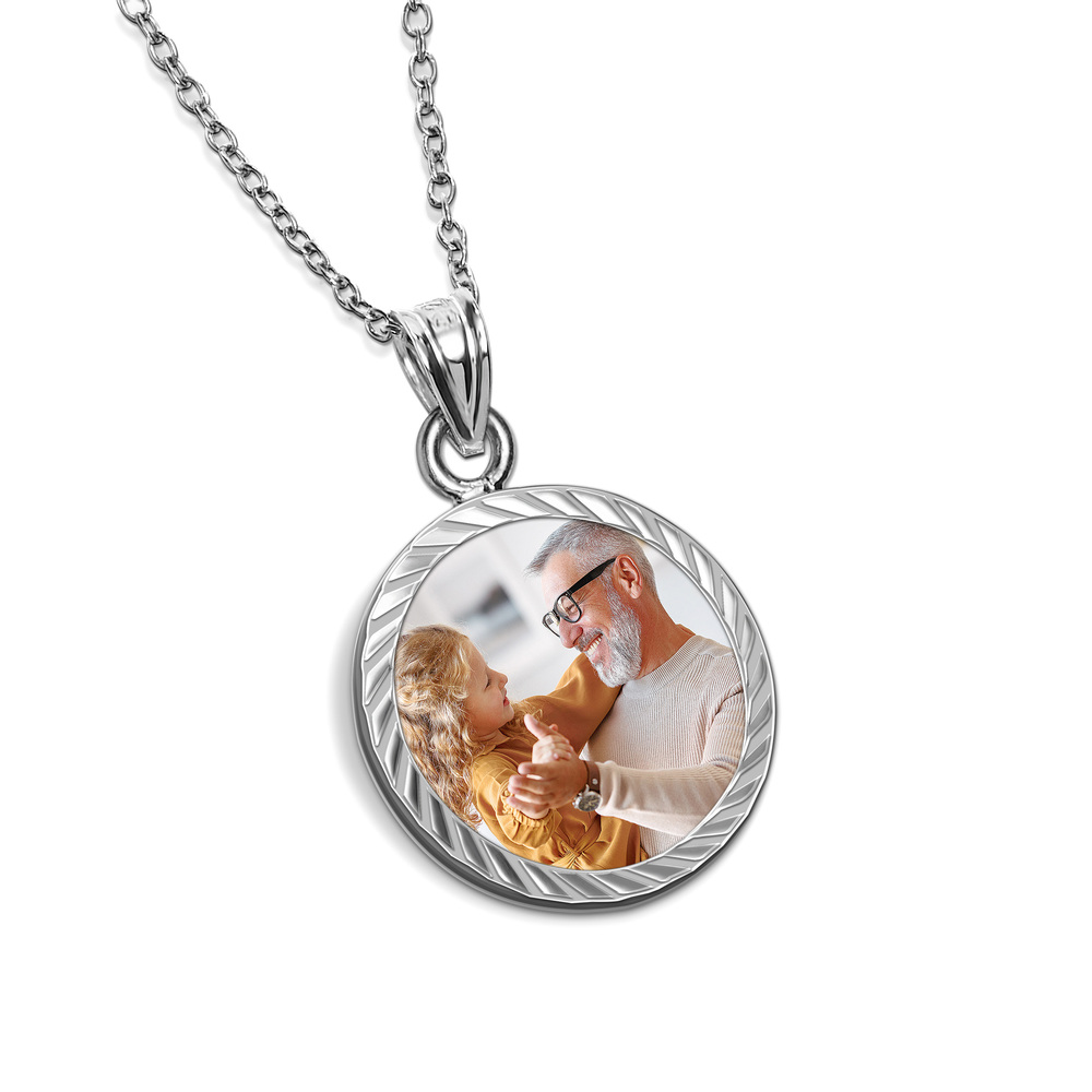 Petite Round Photo Engraved Charm w/ Bezel Frame