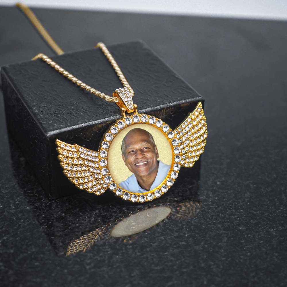 Photo Engraved Cubic Zirconia Angel Pendant
