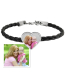 This beautiful bracelet is made of a braided black leather cord - and centered with a stainless steel photo charm.