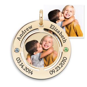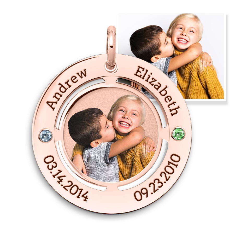 Photo Engraved Personalized Necklace With Birthstones & Text
