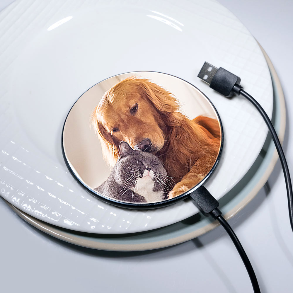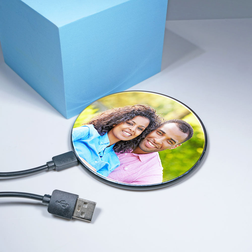 Your photo will glow with radiance when you use this one of kind wireless charger with LED lights. When not being used, this charger is the perfect desk ornament to display your favorite photo.