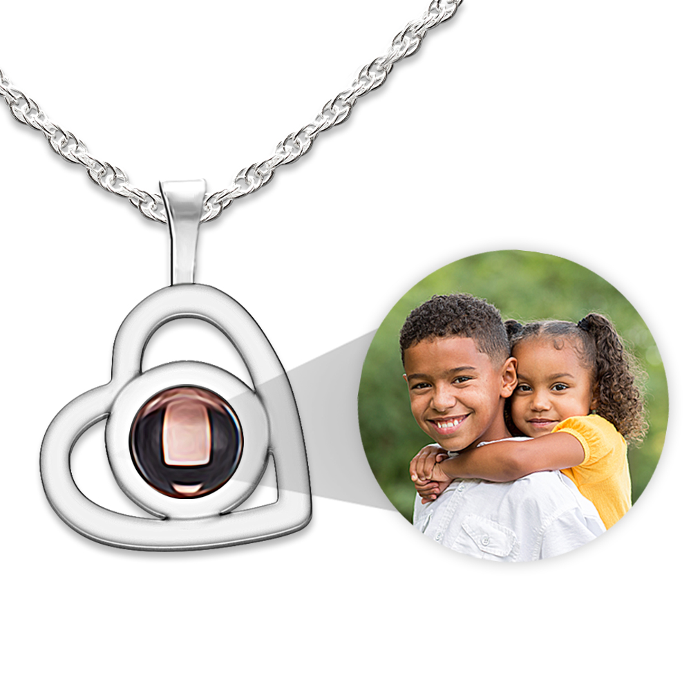 Photo Projection Dangle Heart Necklace & Chain