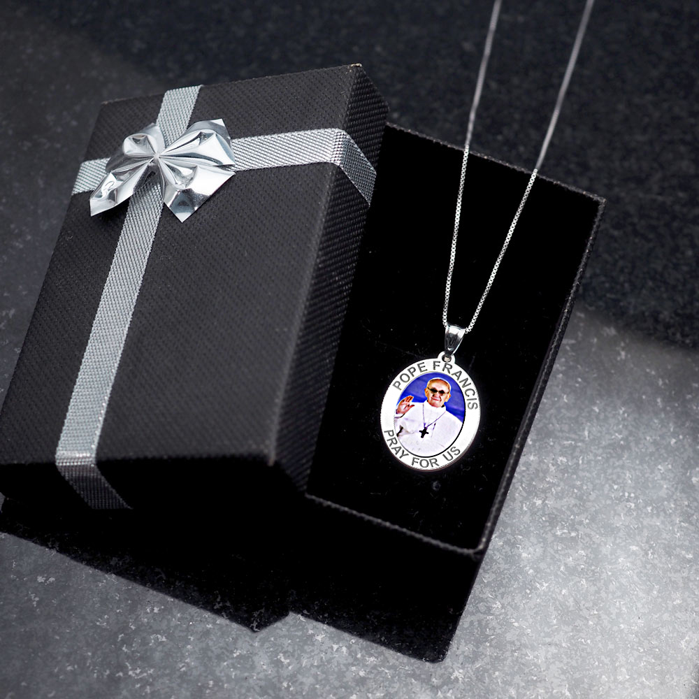 Pope Francis Religious Medal Oval Color Engraved "EXCLUSIVE"