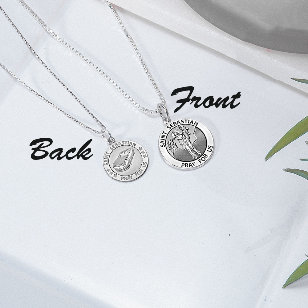 Each medal is engraved with a Saint Sebastian on the frontside