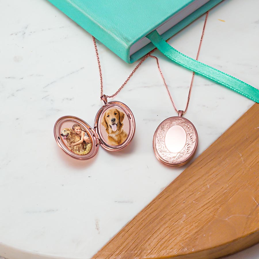 Rose Gold Plated Floral Oval Photo Locket