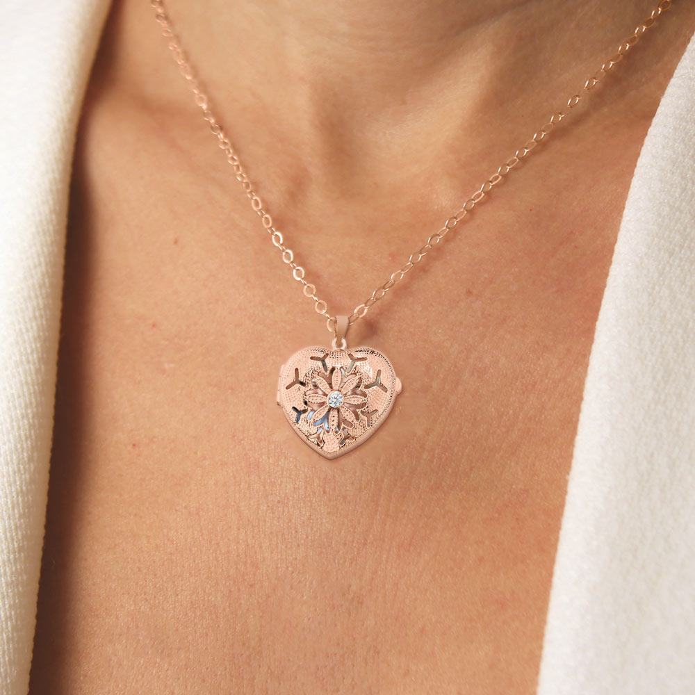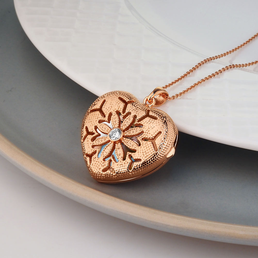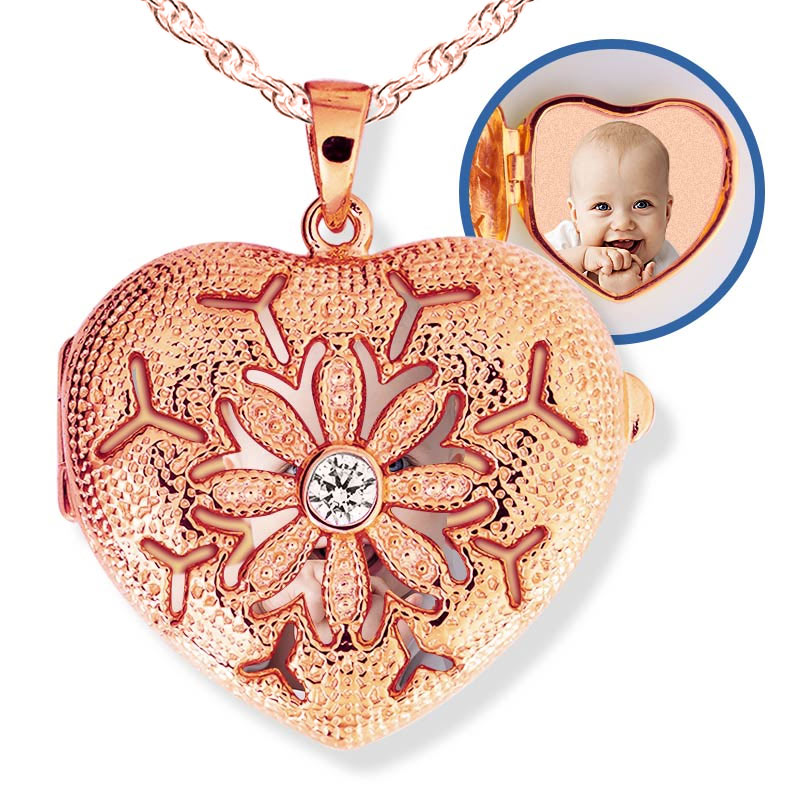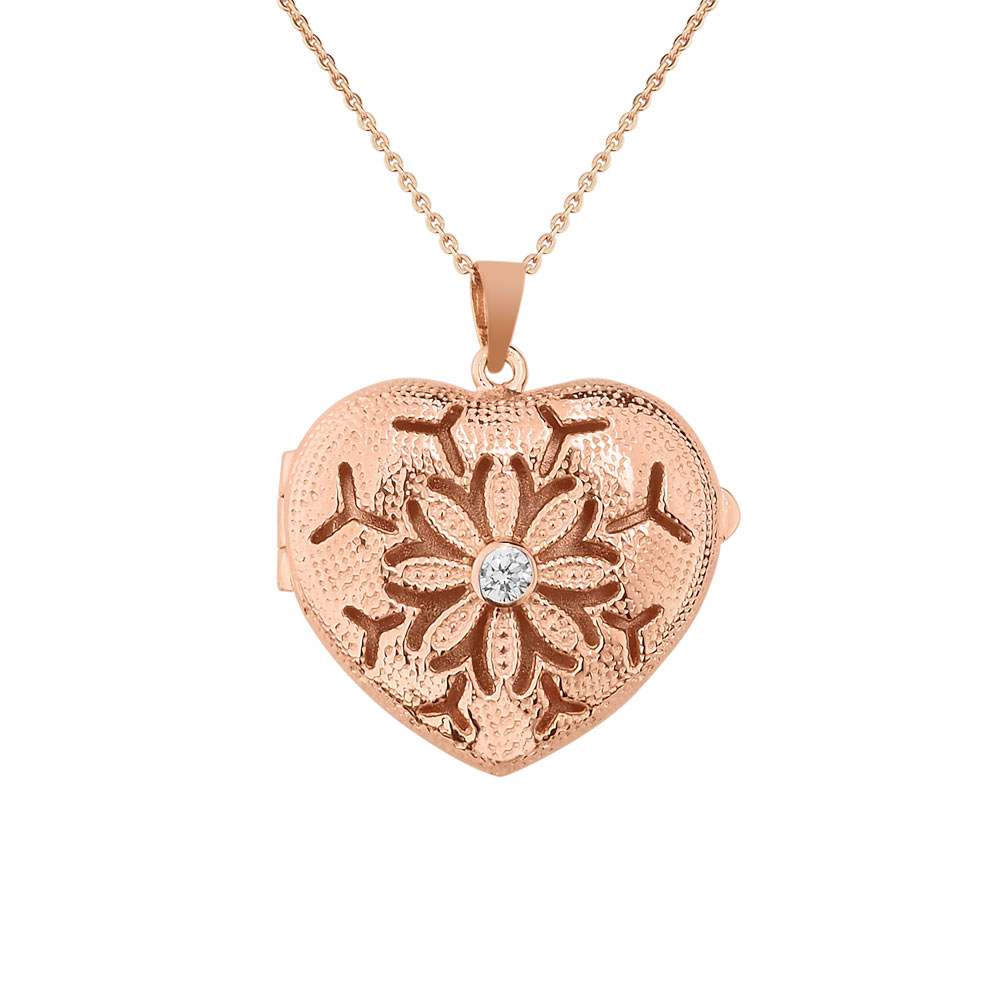 Rose Gold Heart Photo Locket with Cubic Zirconias with Chain Included