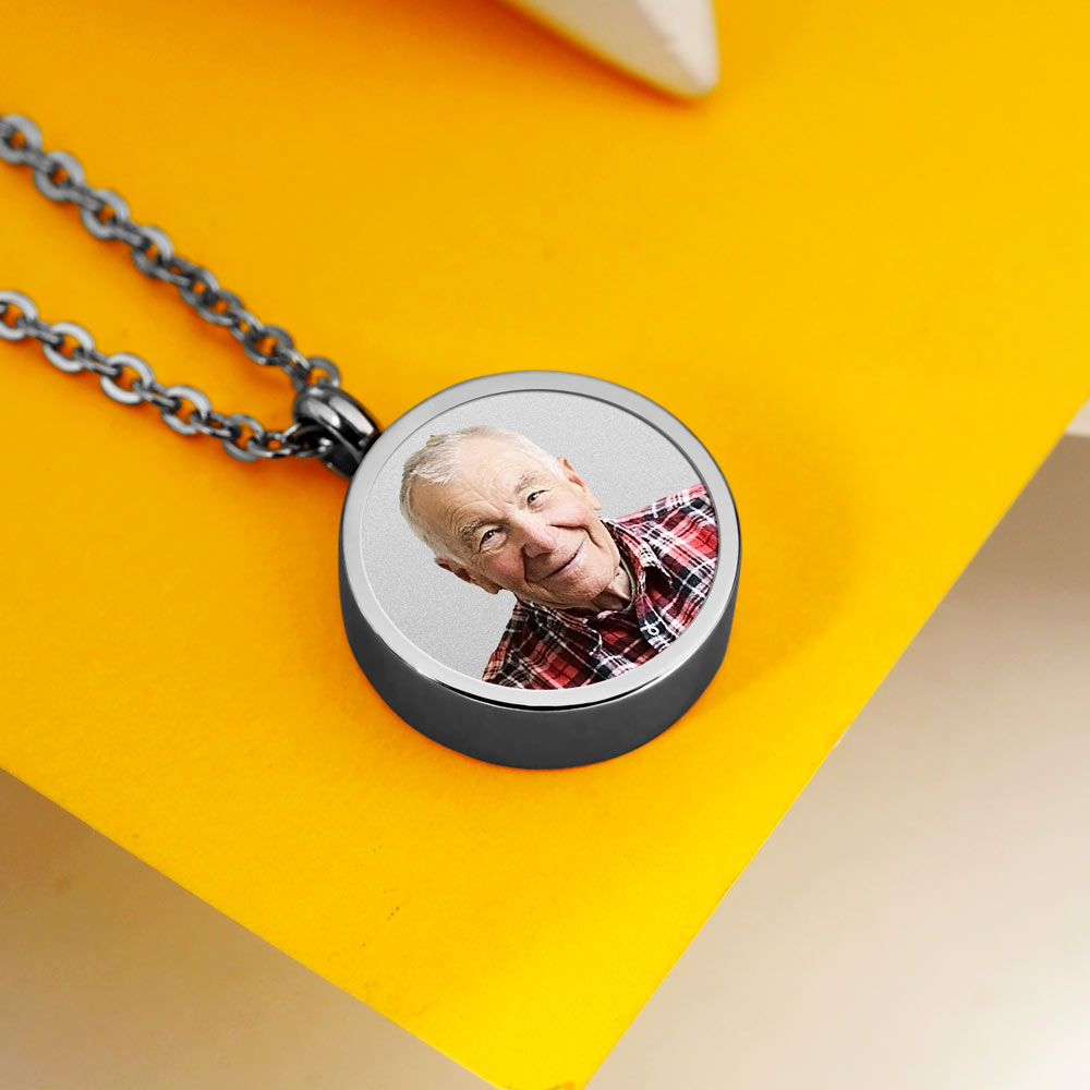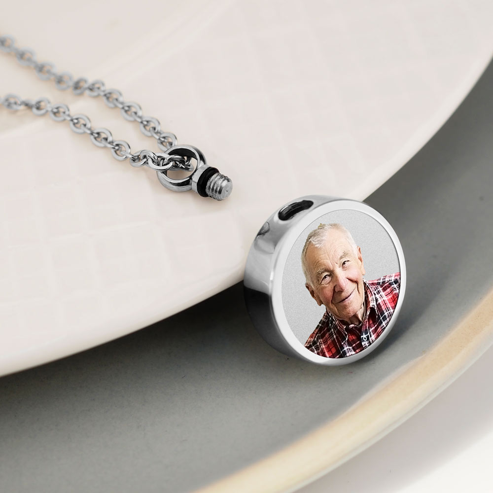This Cremation Round Photo pendant is the perfect way to keep your loved one with you at all times.
