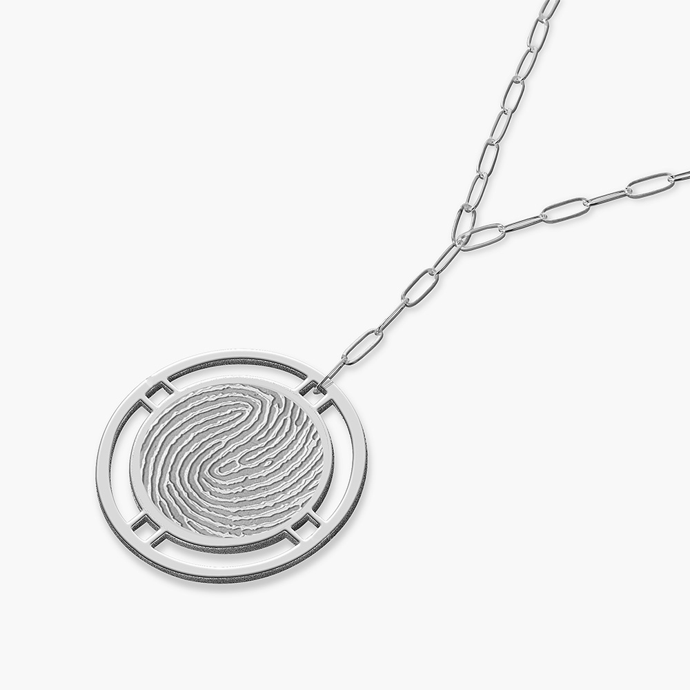 Round Fingerprint Pendant with Open Border Paperclip Necklace