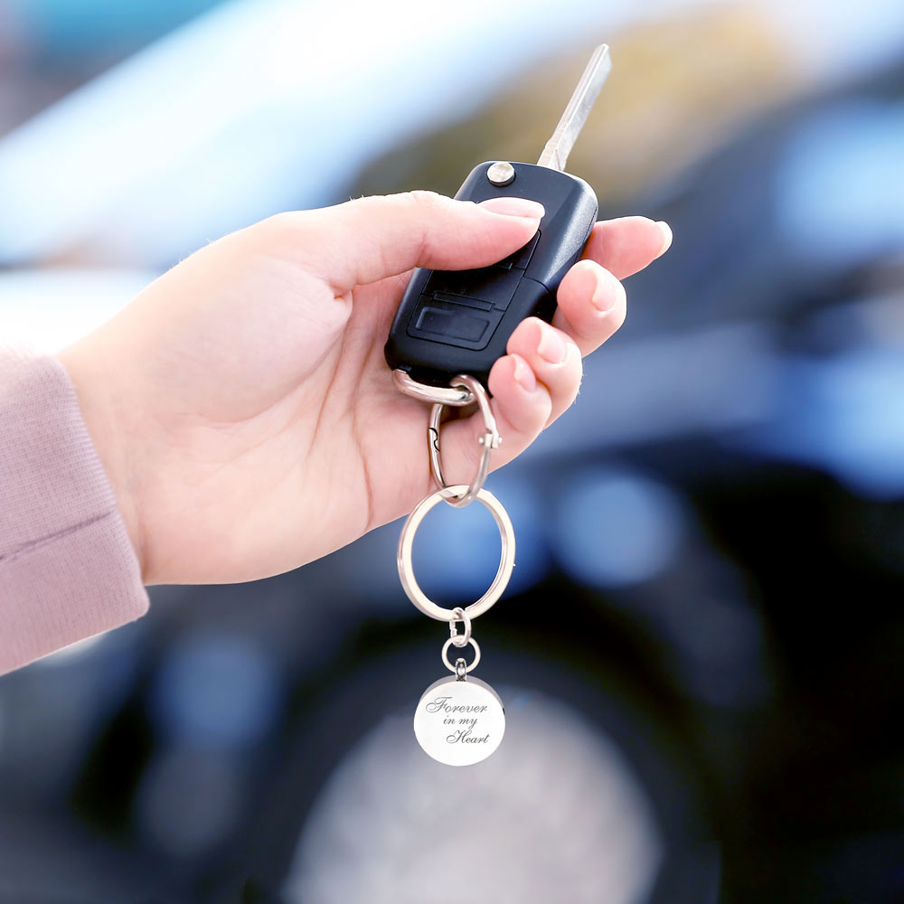 This Cremation Round Keychain is the perfect way to keep your loved one with you at all times.