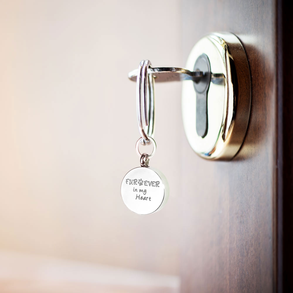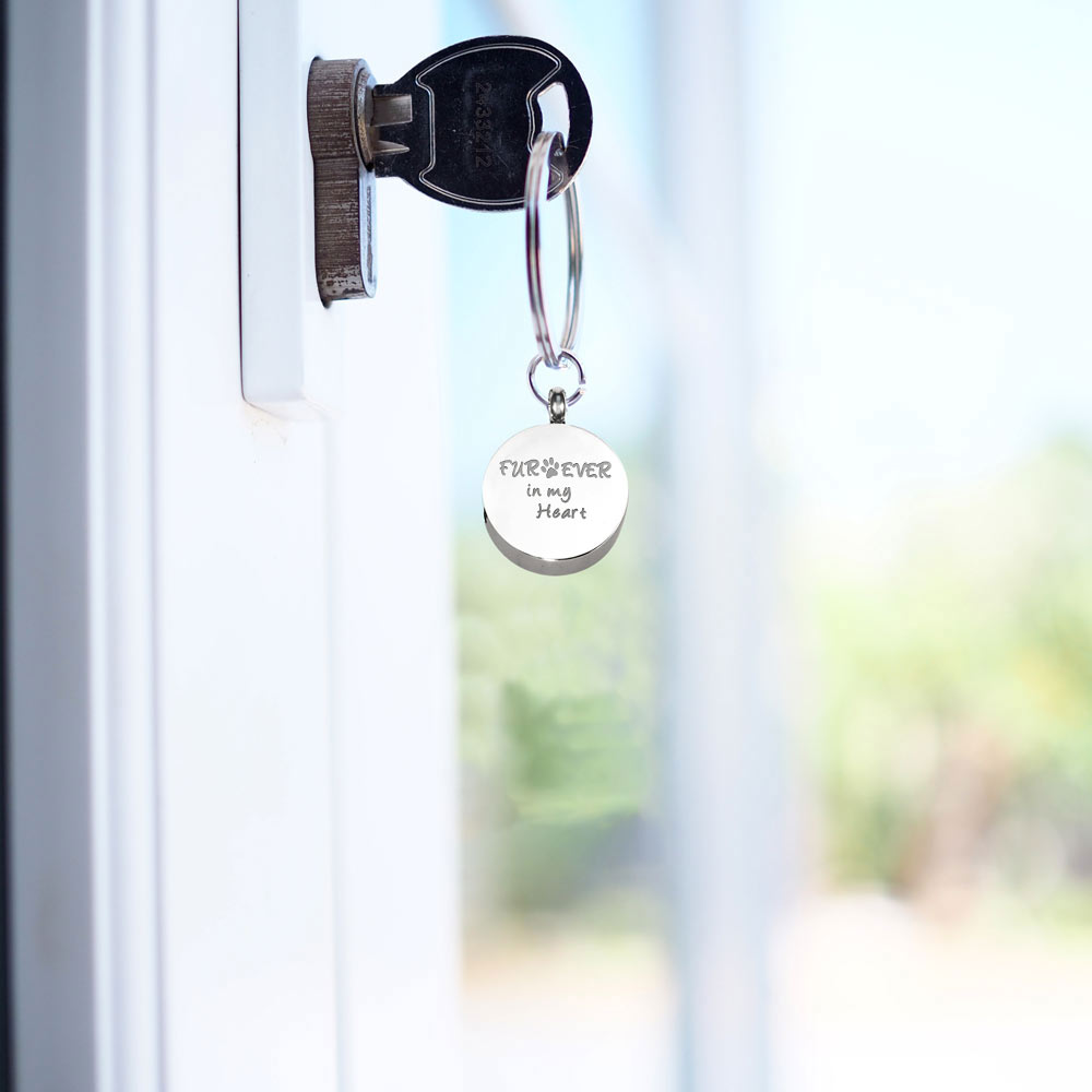 This Cremation Round Keychain is the perfect way to keep your loved one with you at all times.
