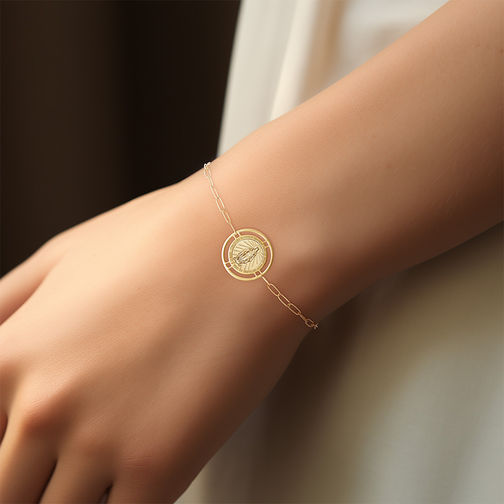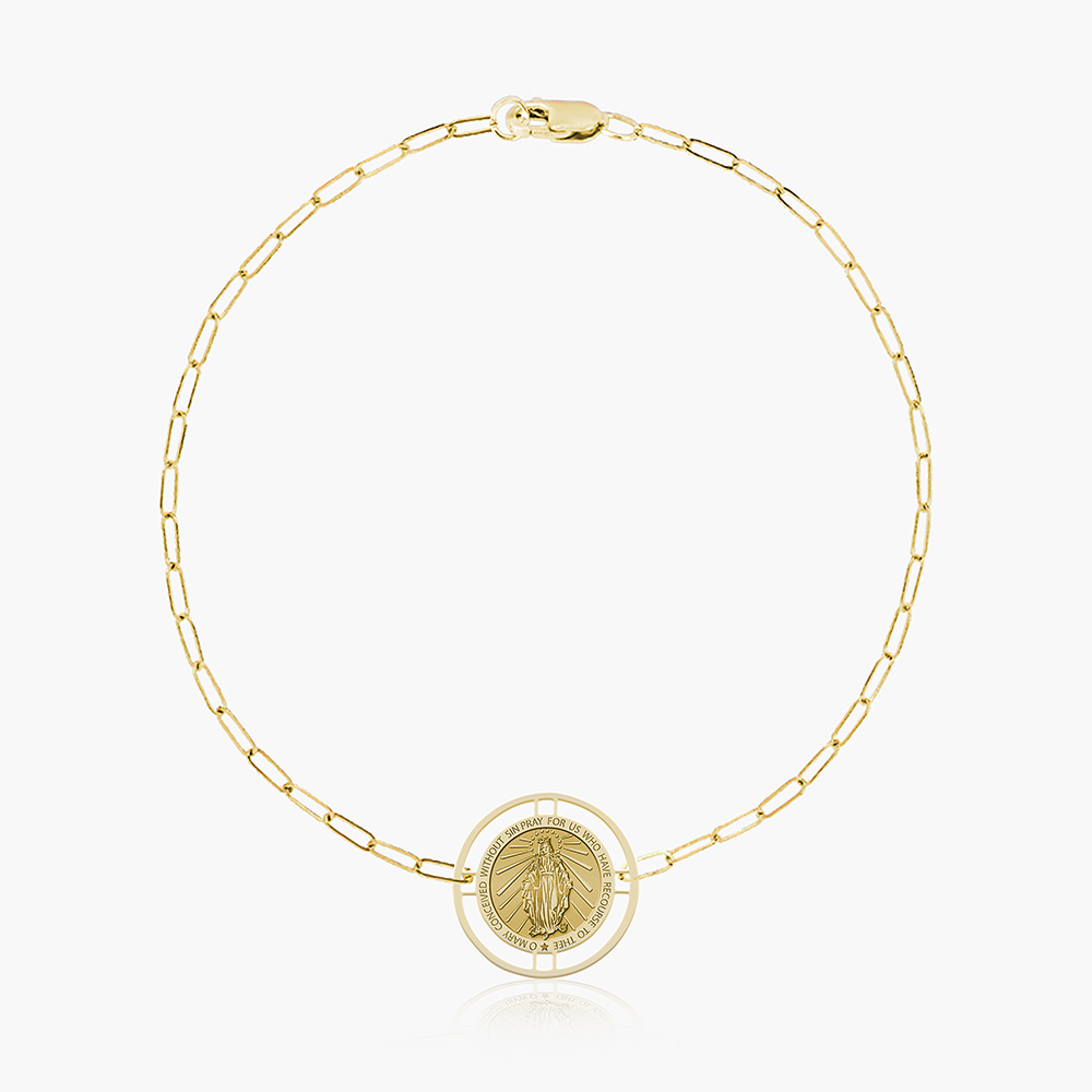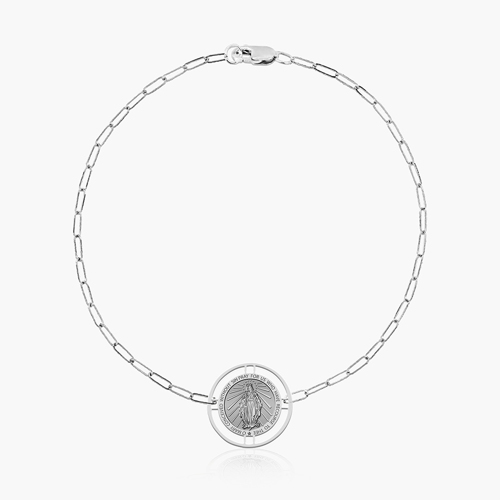 Round Miraculous Medal with Open Border Paperclip Bracelet