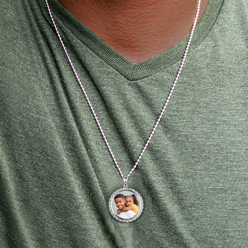 Round Photo Engraved Rope Frame Pendant