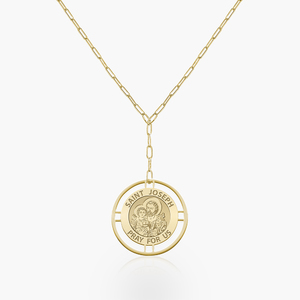 Round Saint Joseph Medal with Open Border Necklace