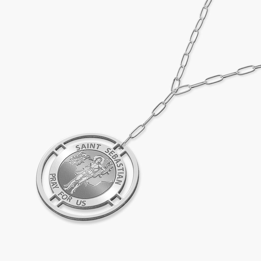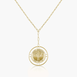 Round Saint Sebastian Medal with Open Border Necklace