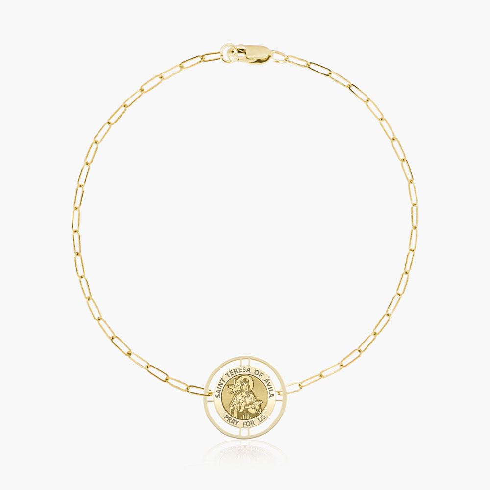 Round Saint Teresa of Avila with Open Border Paperclip Bracelet