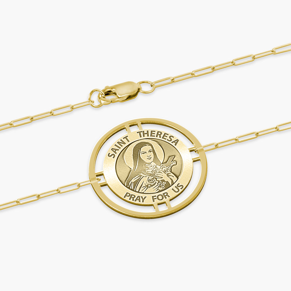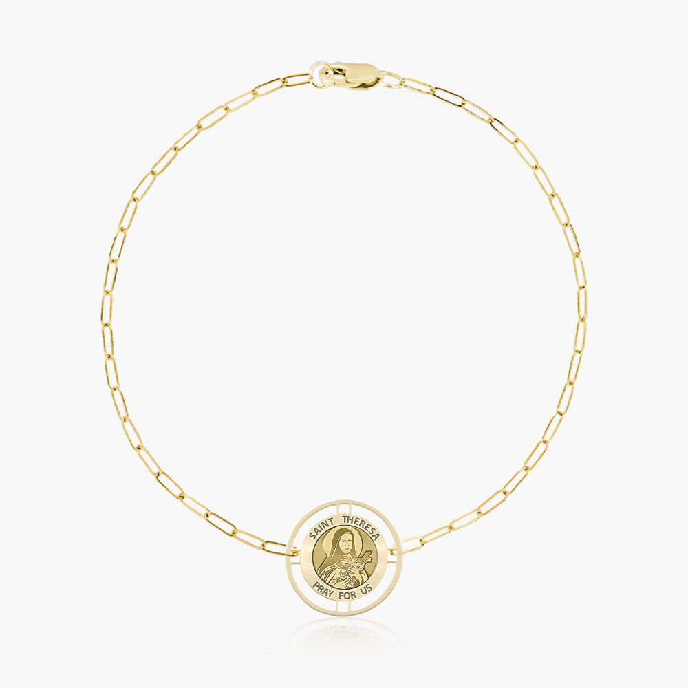 Round Saint Theresa of Lisieux with Open Border Paperclip Bracelet