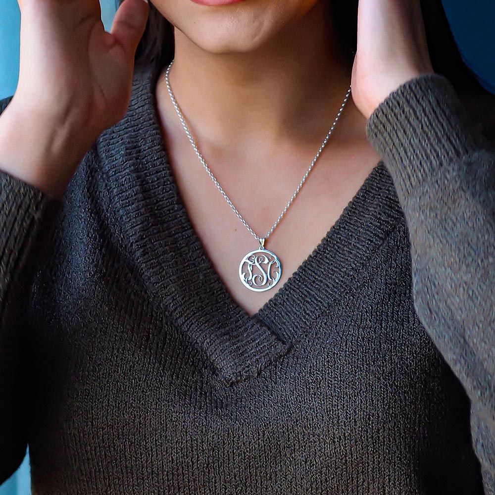 Round Vine Script 3 Letter Monogram Cut-Out Necklace with Chain Included