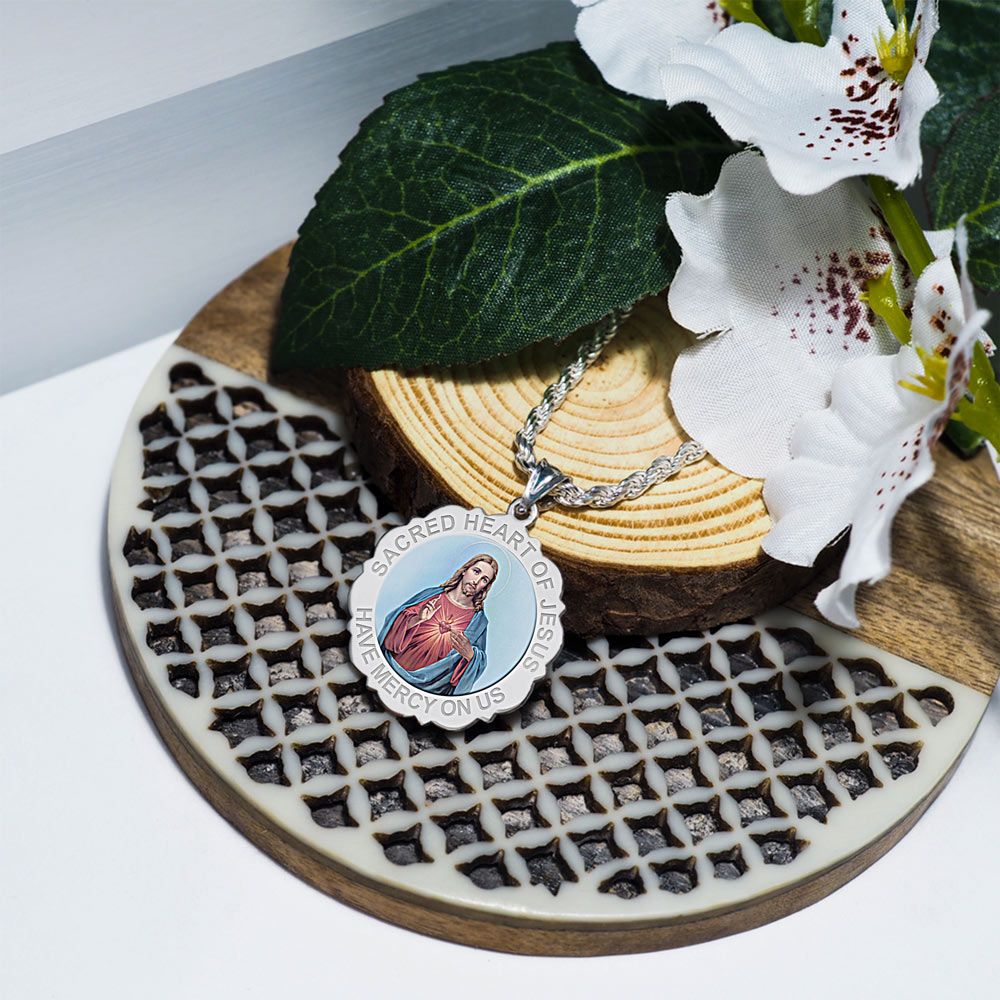 Sacred Heart of Jesus Scalloped Religious Medal "Color EXCLUSIVE"