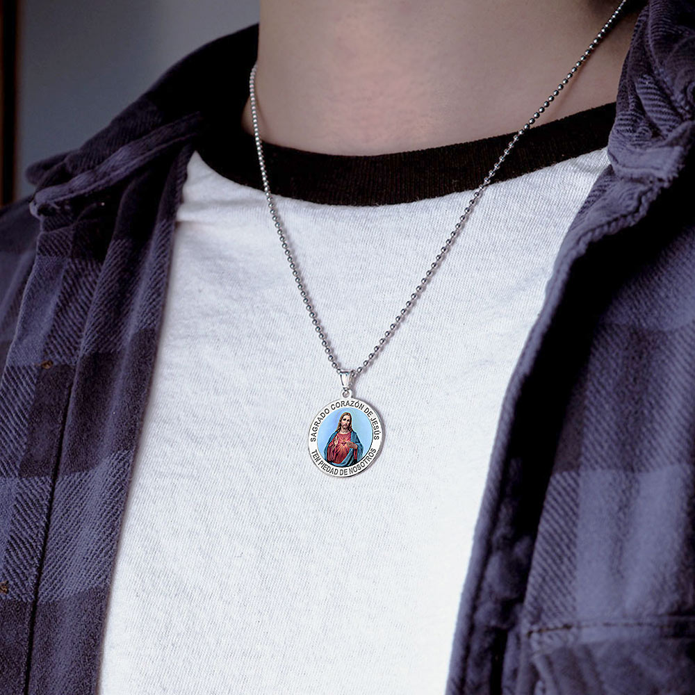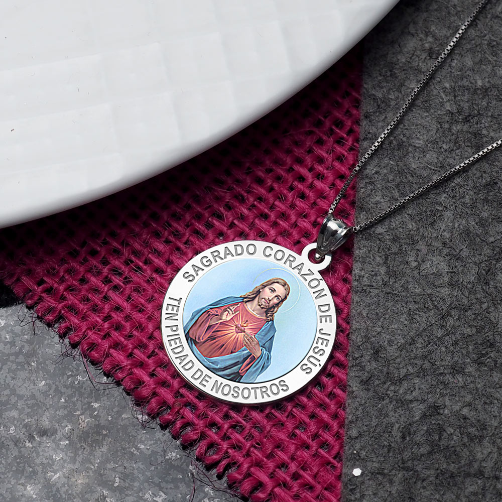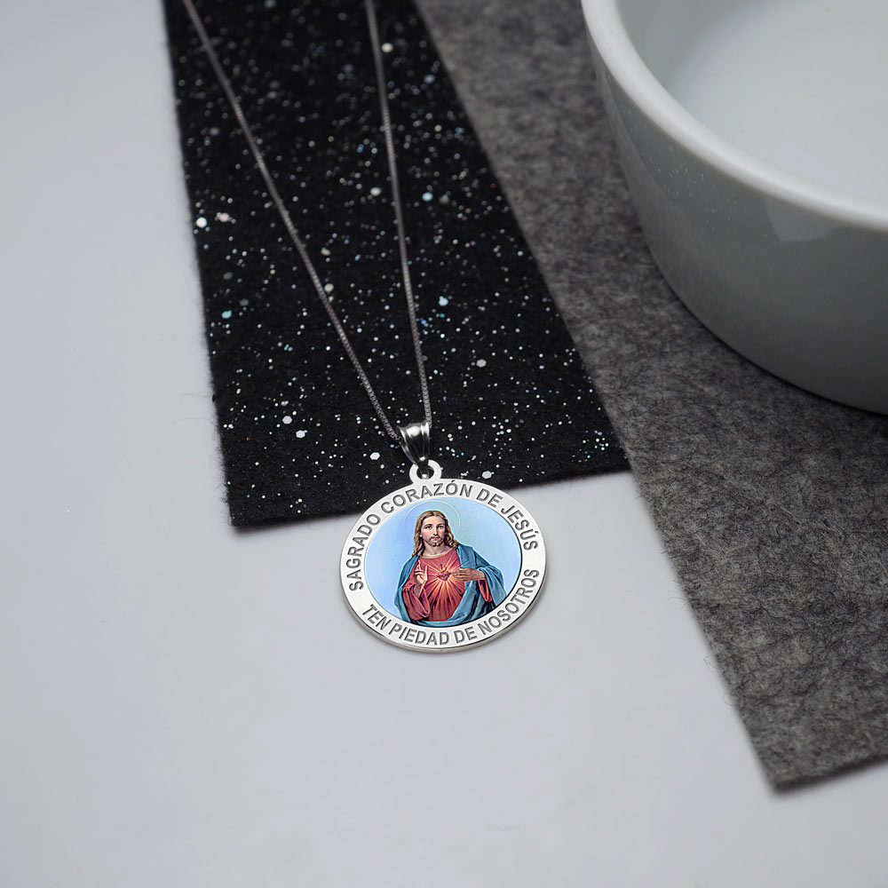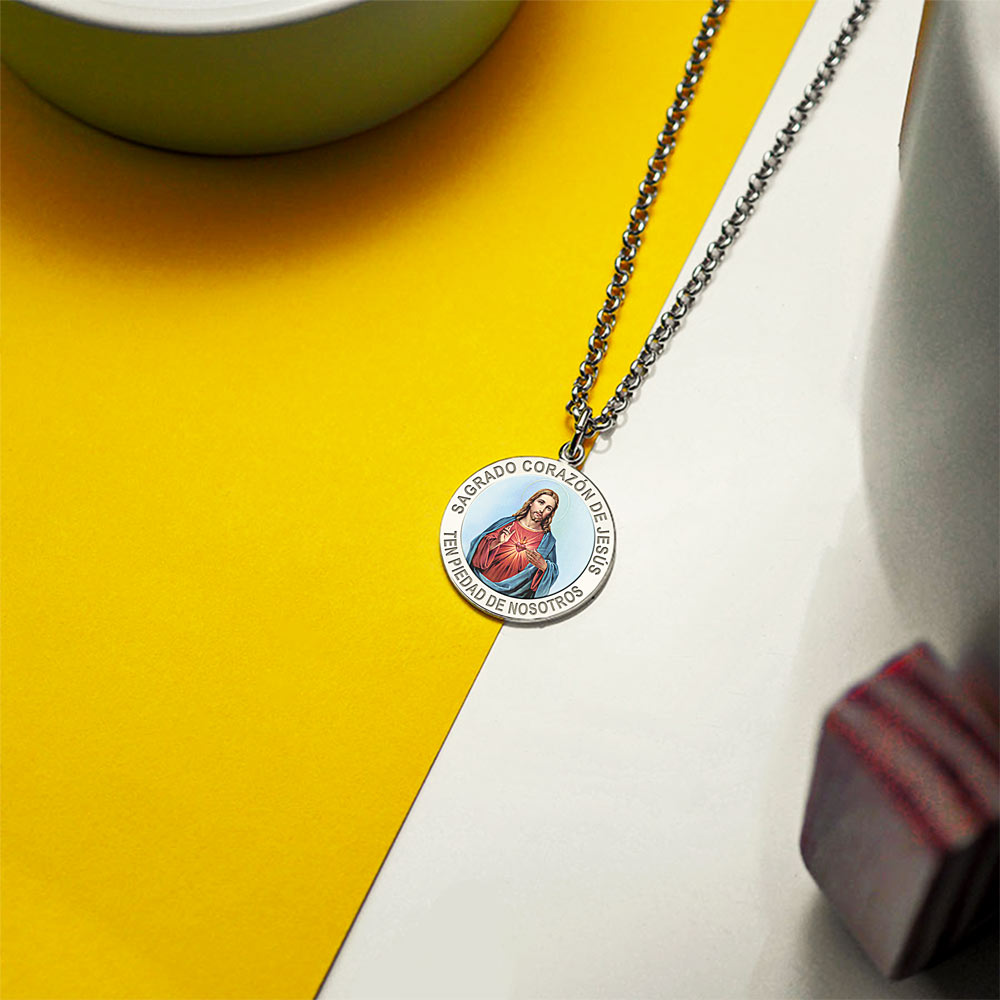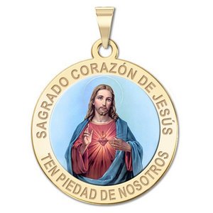 Sagrado Corazon de Jesus Medalla religiosa redonda en color