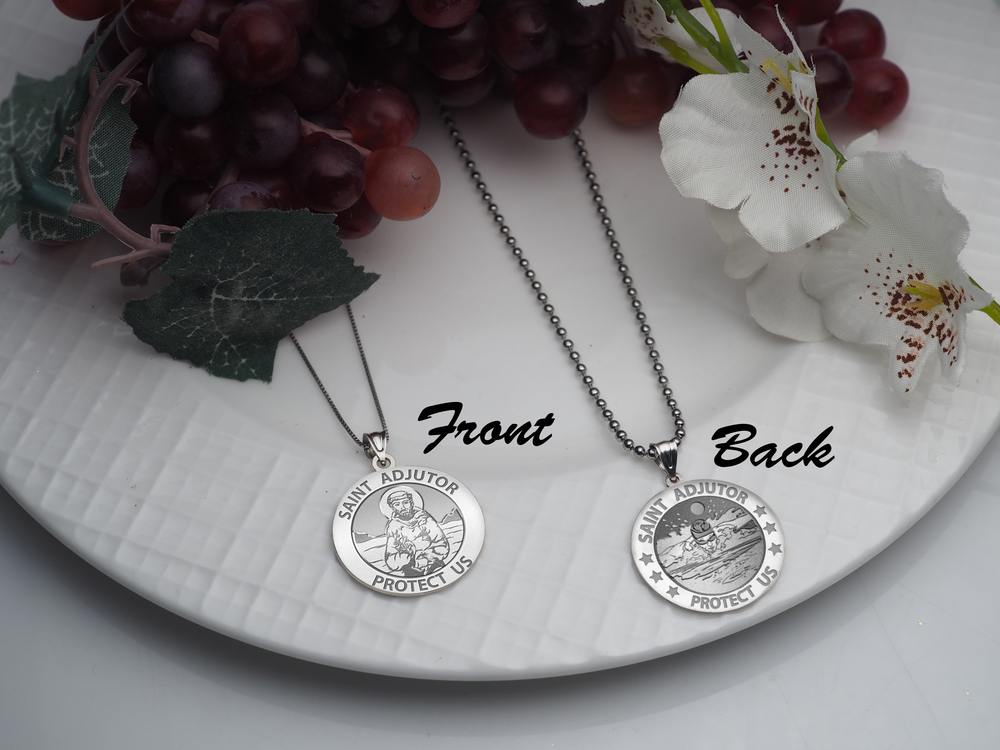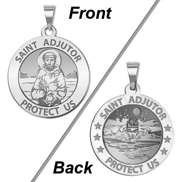Saint Adjutor Doubles Sided Male Swimmer Round Religious Medal - "EXCLUSIVE"