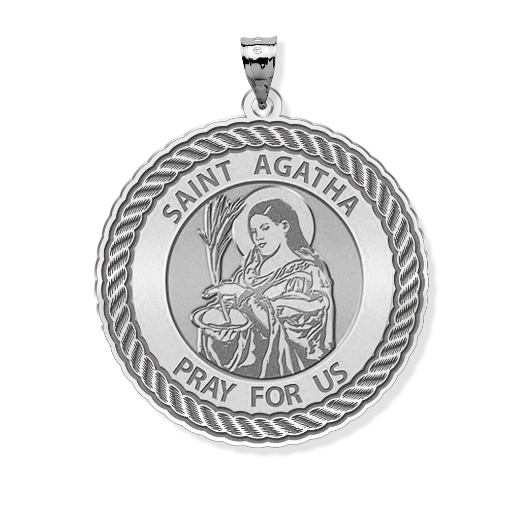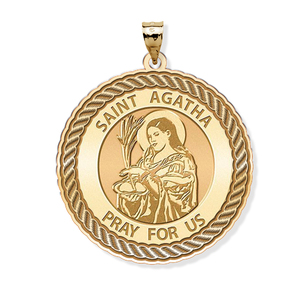 Saint Agatha of Sicily (d. 251) is a Christian saint, and her memorial is on the 5th of February. Agatha was born at Catania and she was martyred in approximately AD 250. She is the patron saint of Catania. She is one of seven women, excluding the Blessed Virgin Mary, commemorated by name in the Canon of the Mass. According to variations of her legend, having rejected the amorous advances of a Roman prefect, she was persecuted for her Christian faith. Among the tortures she underwent was the cutting off of her breasts, and is therefore often depicted as carrying her excised breasts on a platter. The shape of her amputated breasts, especially as depicted in artistic renderings, gave rise to her attribution as the patron saint of bell-founders and as the patron saint of bakers. More recently, she has been venerated as patron saint of breast cancer patients, breast disorders and victims of rape. Her scorned admirer eventually sentenced her to death by being burnt at the stake. However, she was saved from this fate by a mysterious earthquake. She later died in prison. She is considered as patron saint of Malta since her intercession is reported to have saved Malta from Turkish invasion in 1551. The memory of Agatha is upheld in particular by the Military Order of the Collar of Saint Agatha of Pattern.