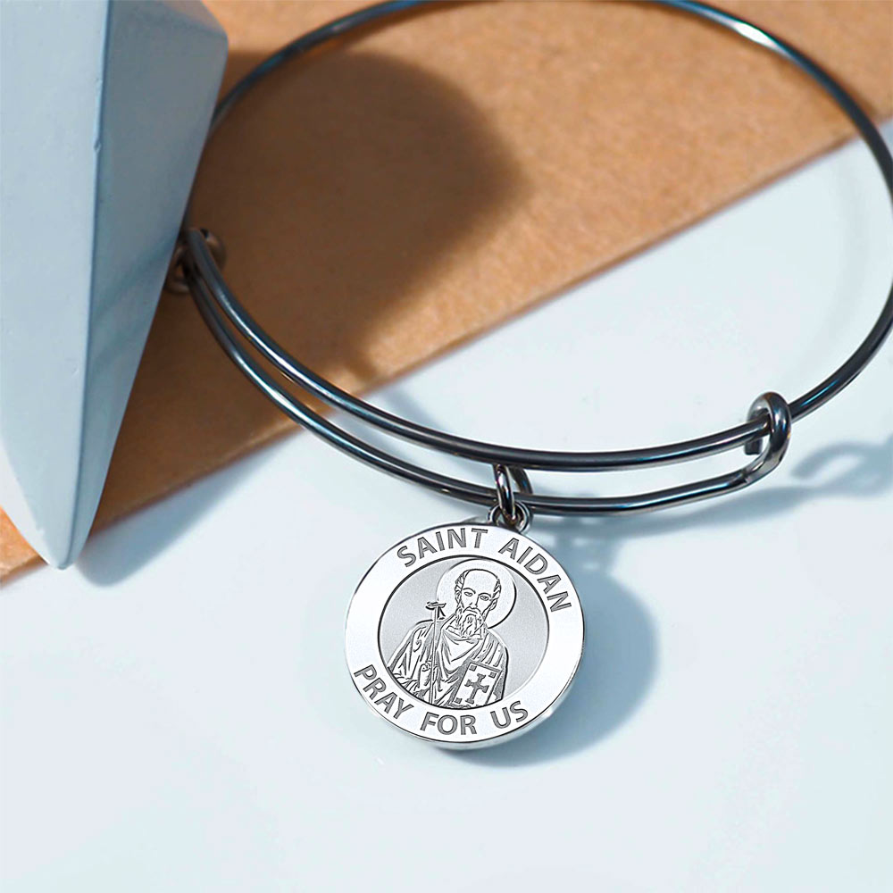 The Saint Aidan Medal charm measures at 3/4 Inch (Size of a Nickel)