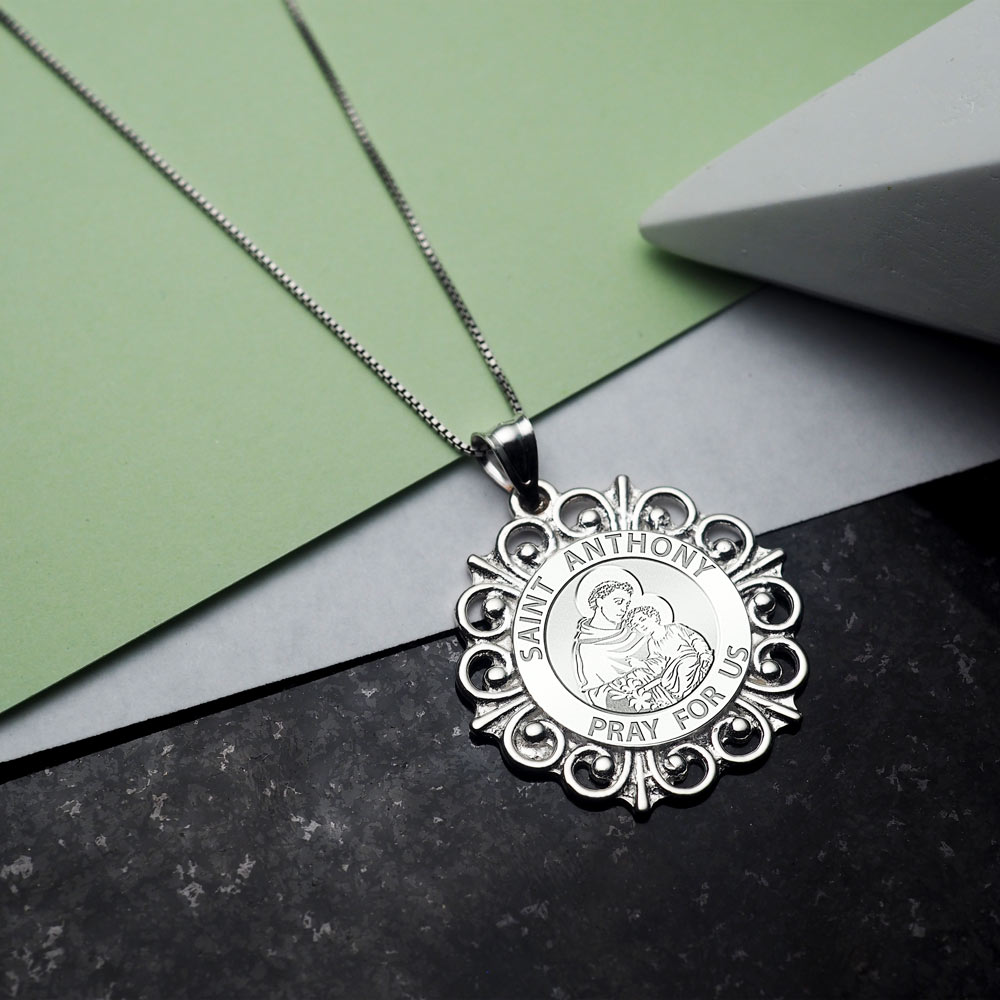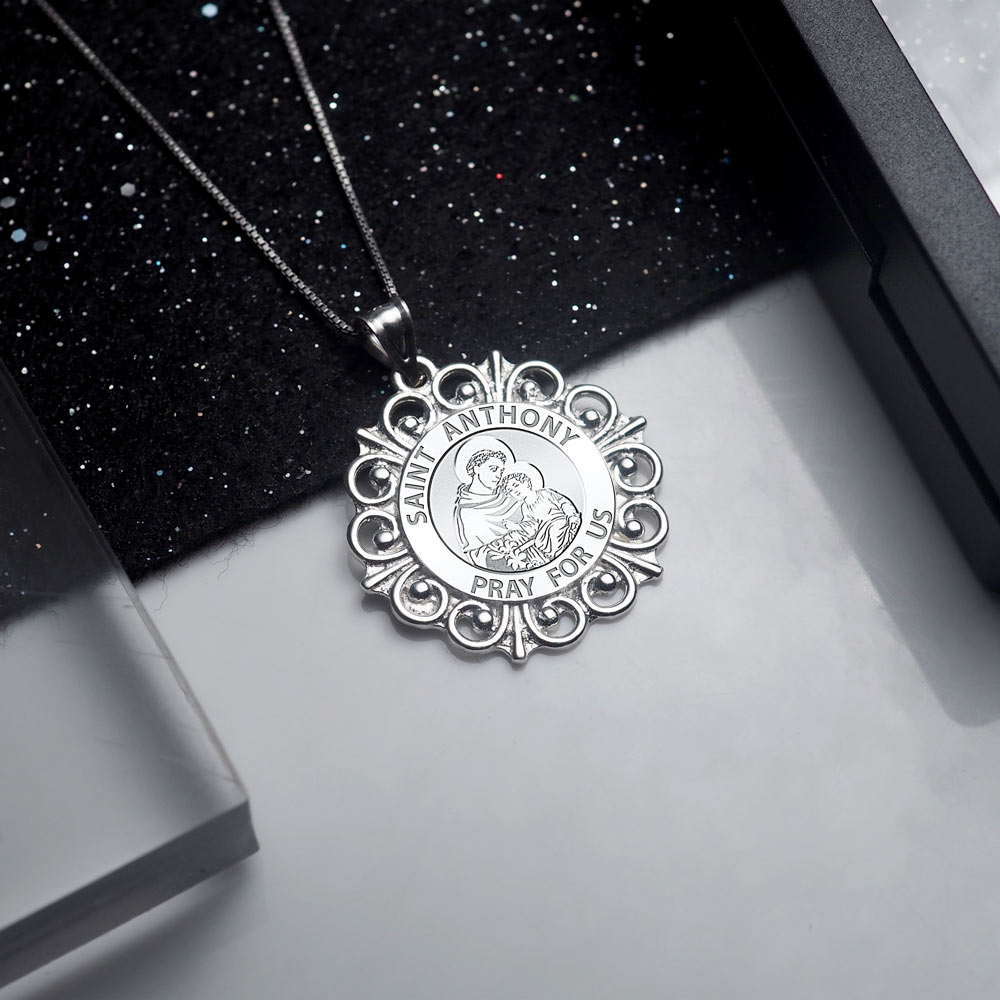 Saint Anthony Round Filigree Religious Medal "EXCLUSIVE"