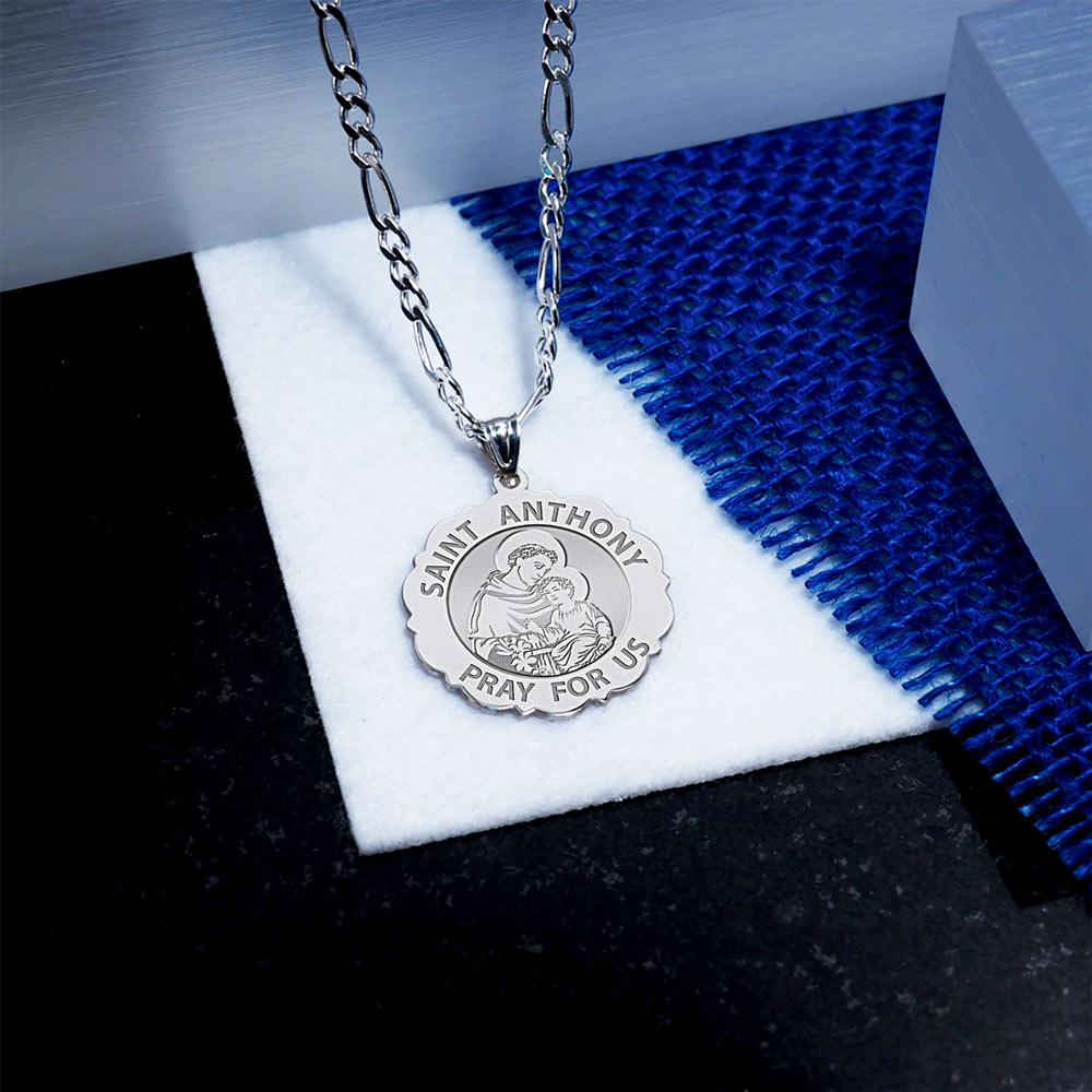 Saint Anthony Scalloped Round Religious Medal "EXCLUSIVE"
