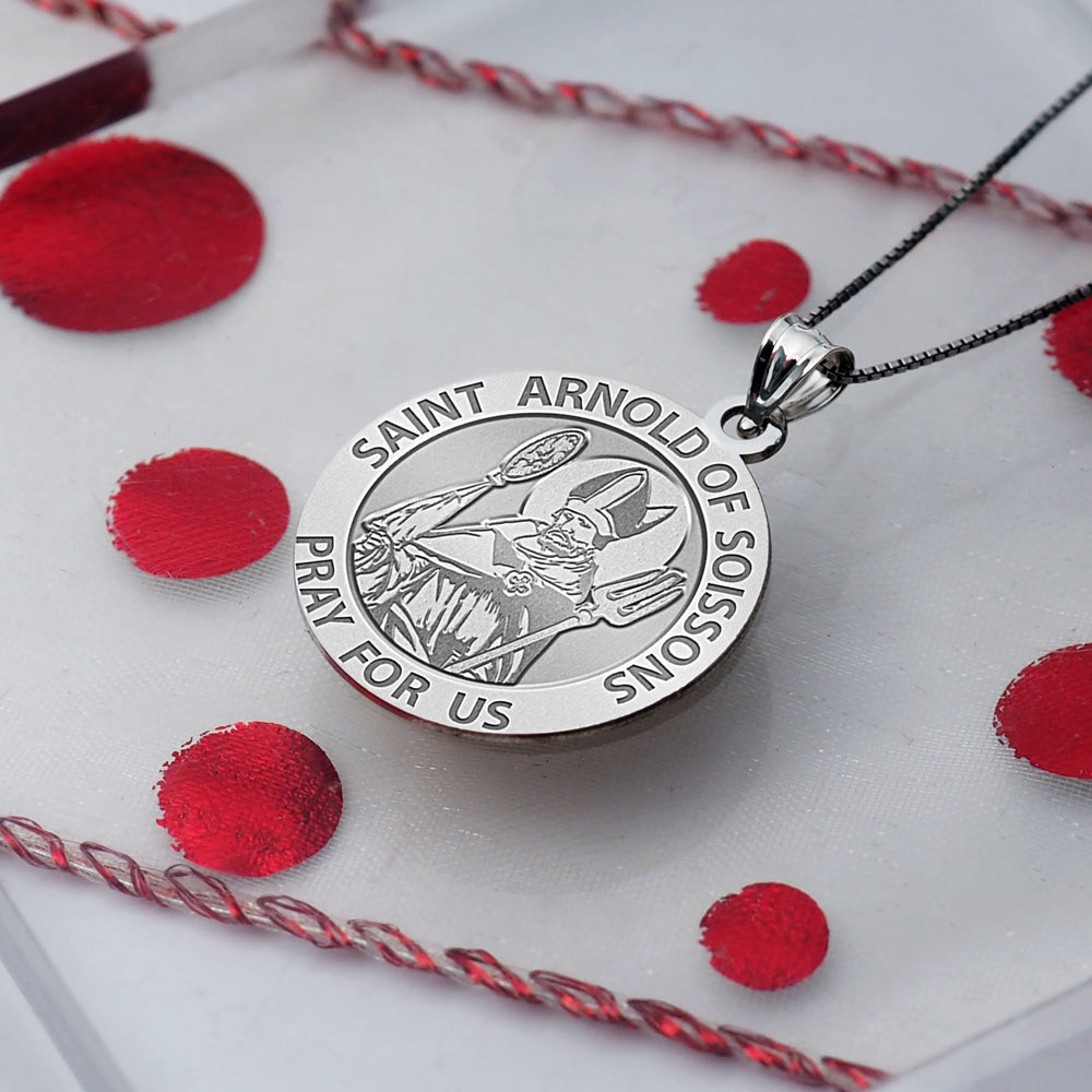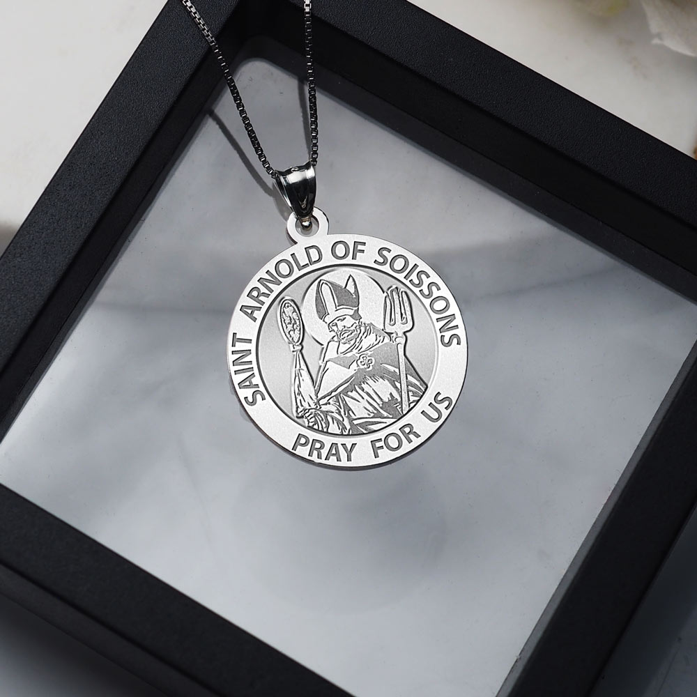 Saint Arnold of Soissons Round Religious Medal "EXCLUSIVE"
