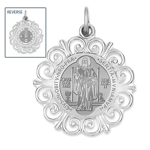 Saint Benedict Double Sided Round Filigree Religious Medal "EXCLUSIVE"
