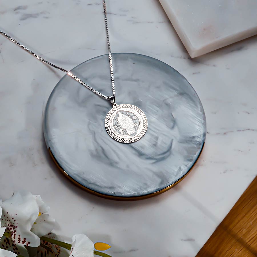 Saint Benedict Round Rope Border Religious Medal