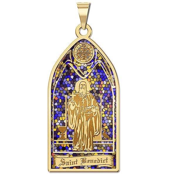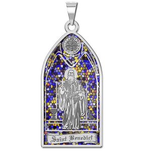 Saint Benedict - Stained Glass Religious Medal "EXCLUSIVE"