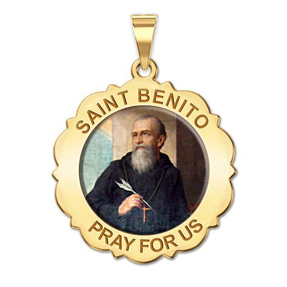 Saint Benito Scalloped Round Color Religious Medal