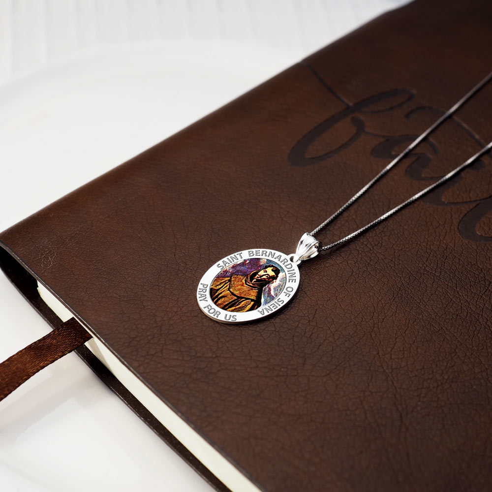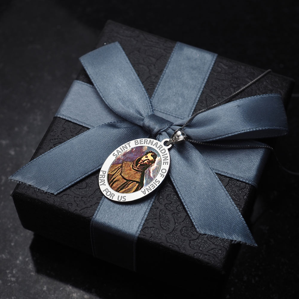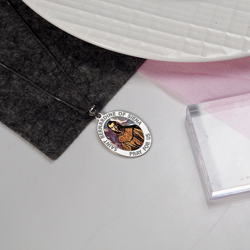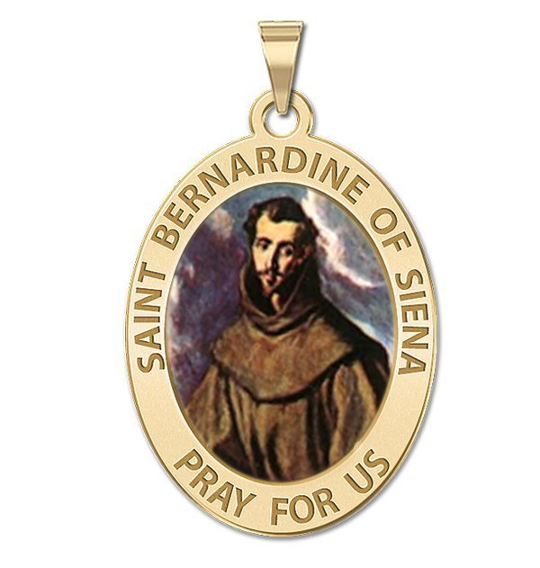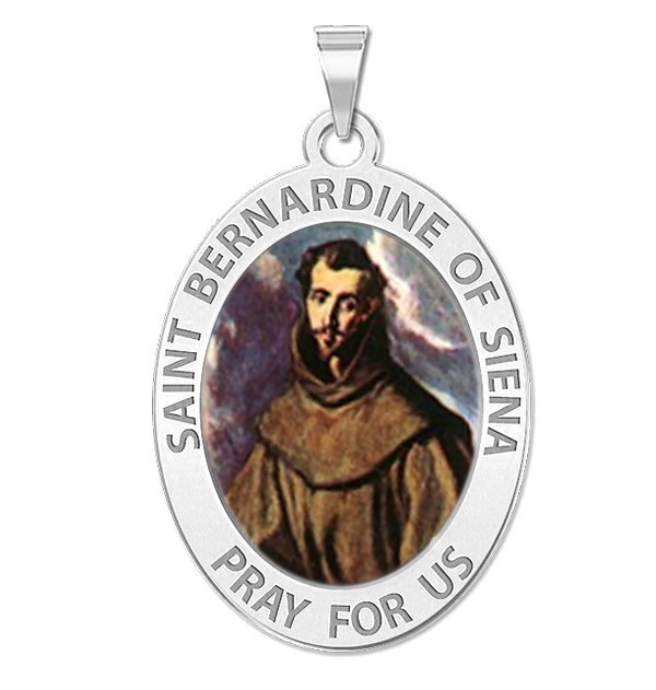 Saint Bernadine Of Siena Oval Religious Medal Color
