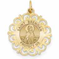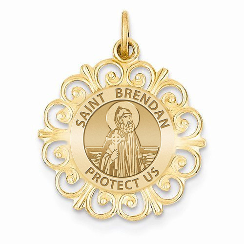 Saint Brendan Round Filigree Religious Medal "EXCLUSIVE"