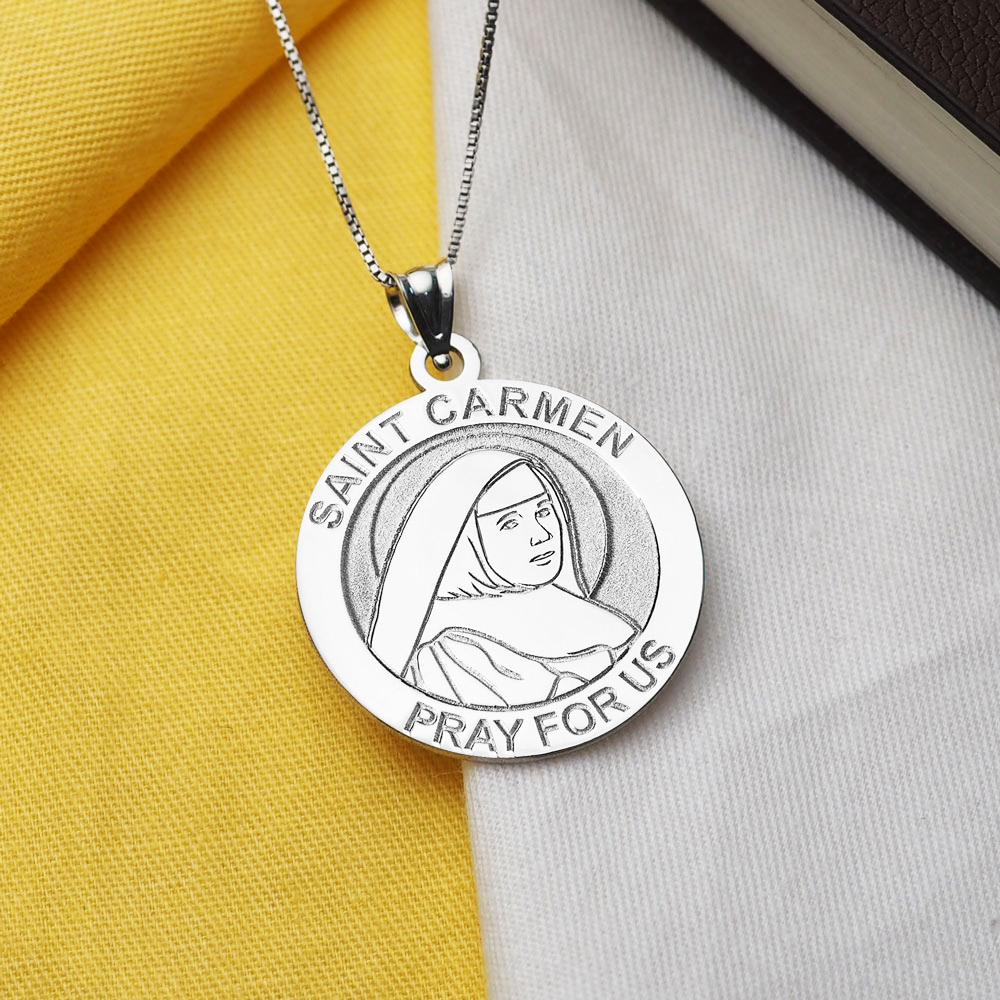 Saint Carmen Round Religious Medal "EXCLUSIVE"