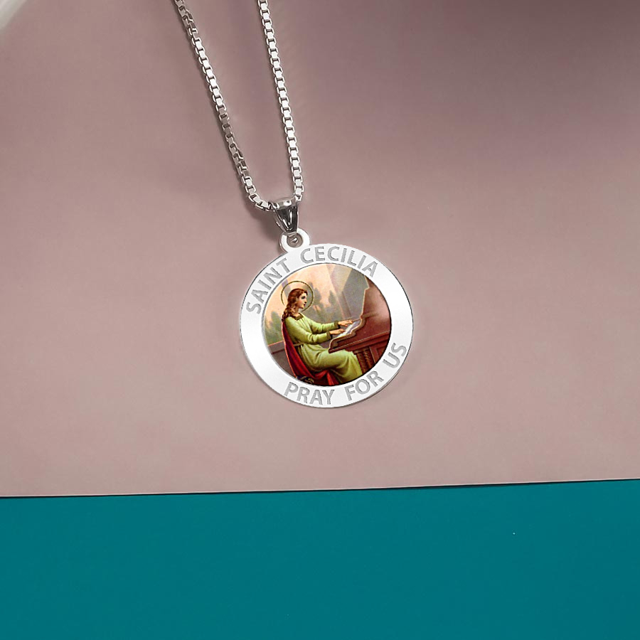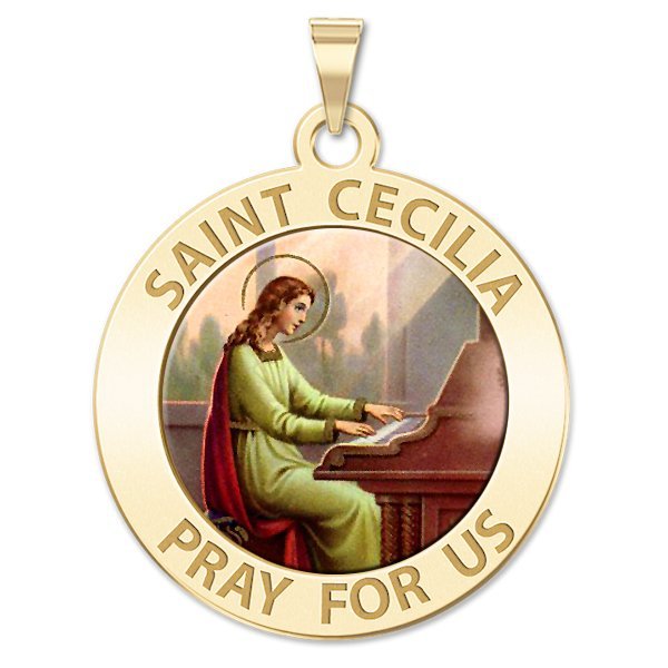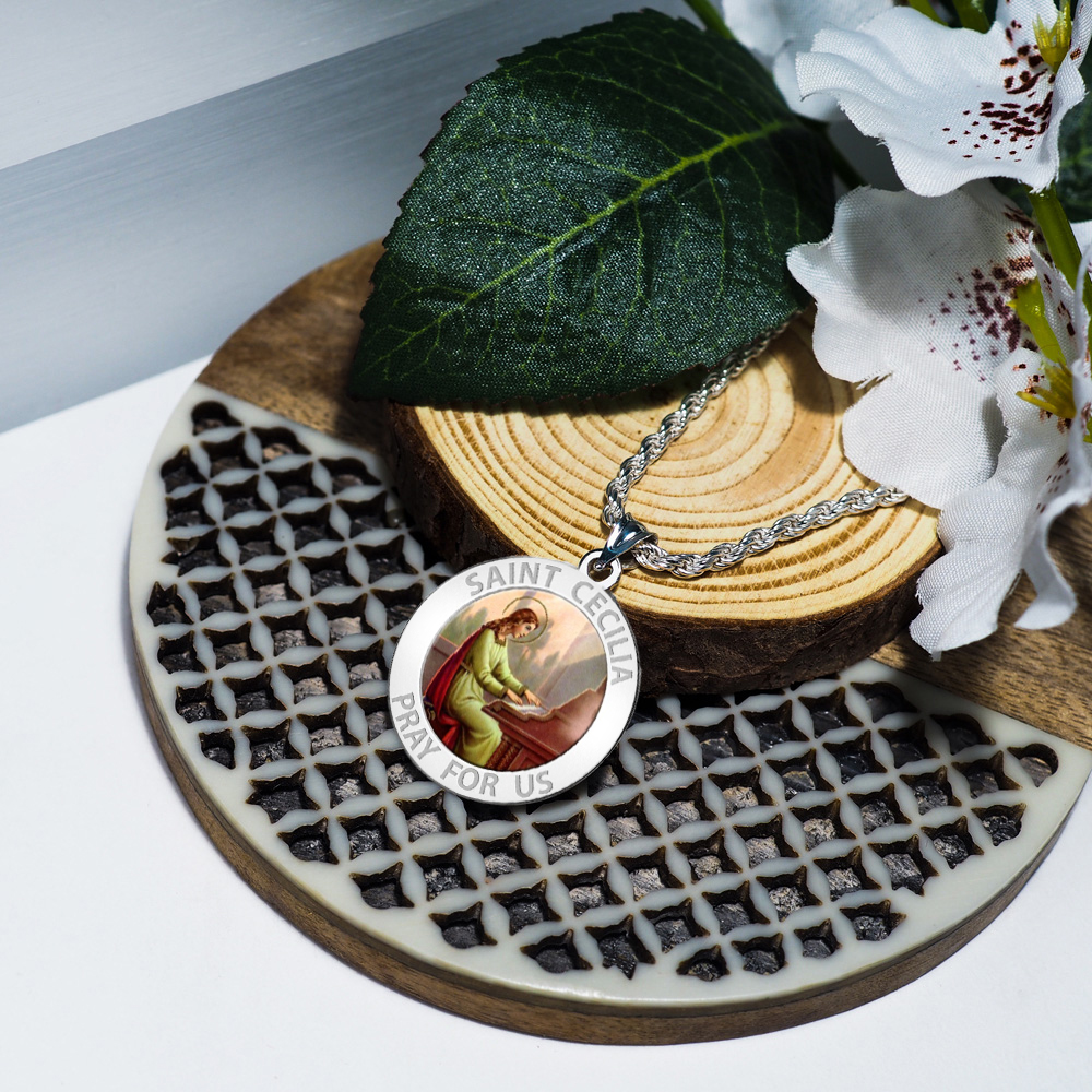 Saint Cecilia Round Religious Medal - "Color EXCLUSIVE"